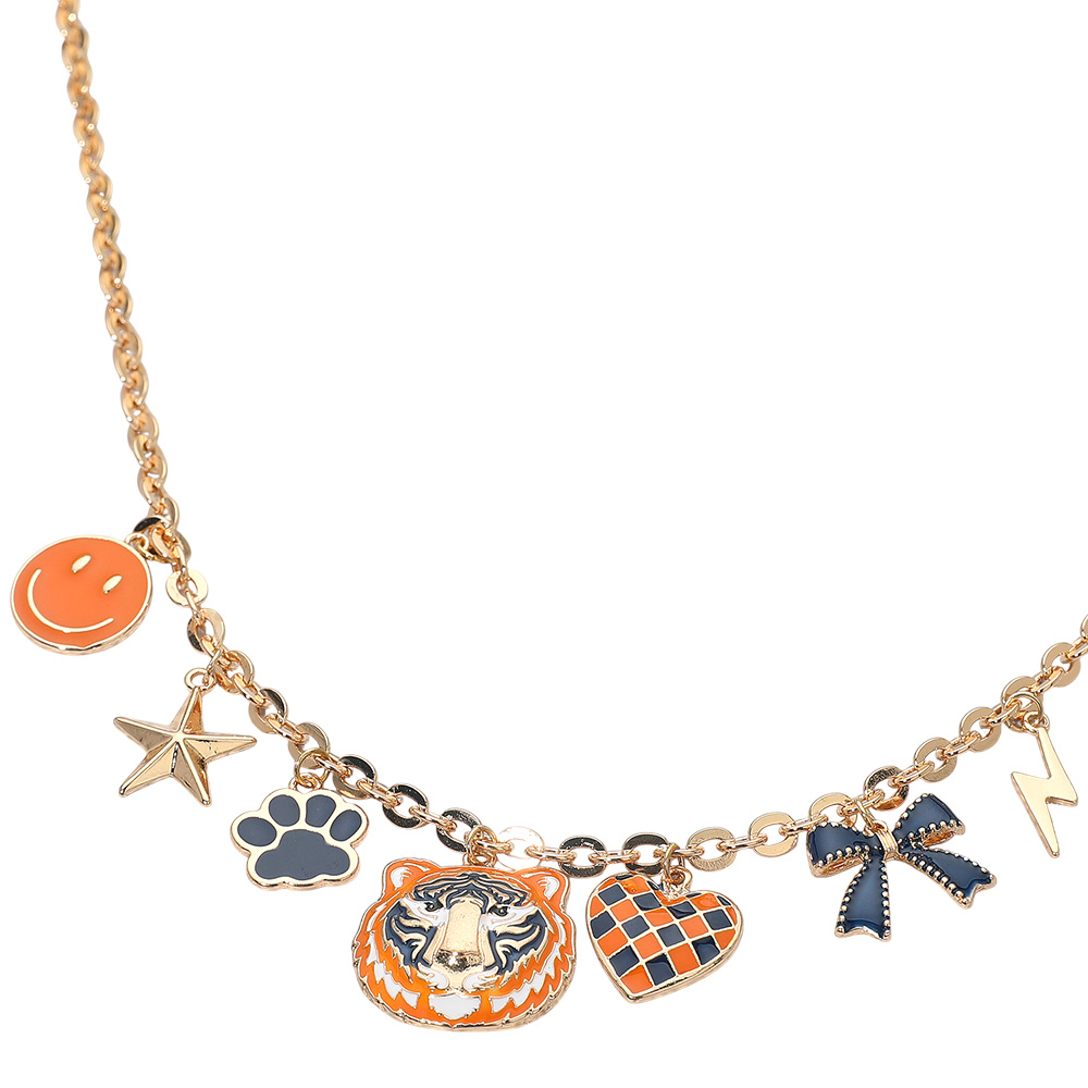 Gameday Animal Mascot Bow Star Heart Smile Face Bolt Charm Station Necklace