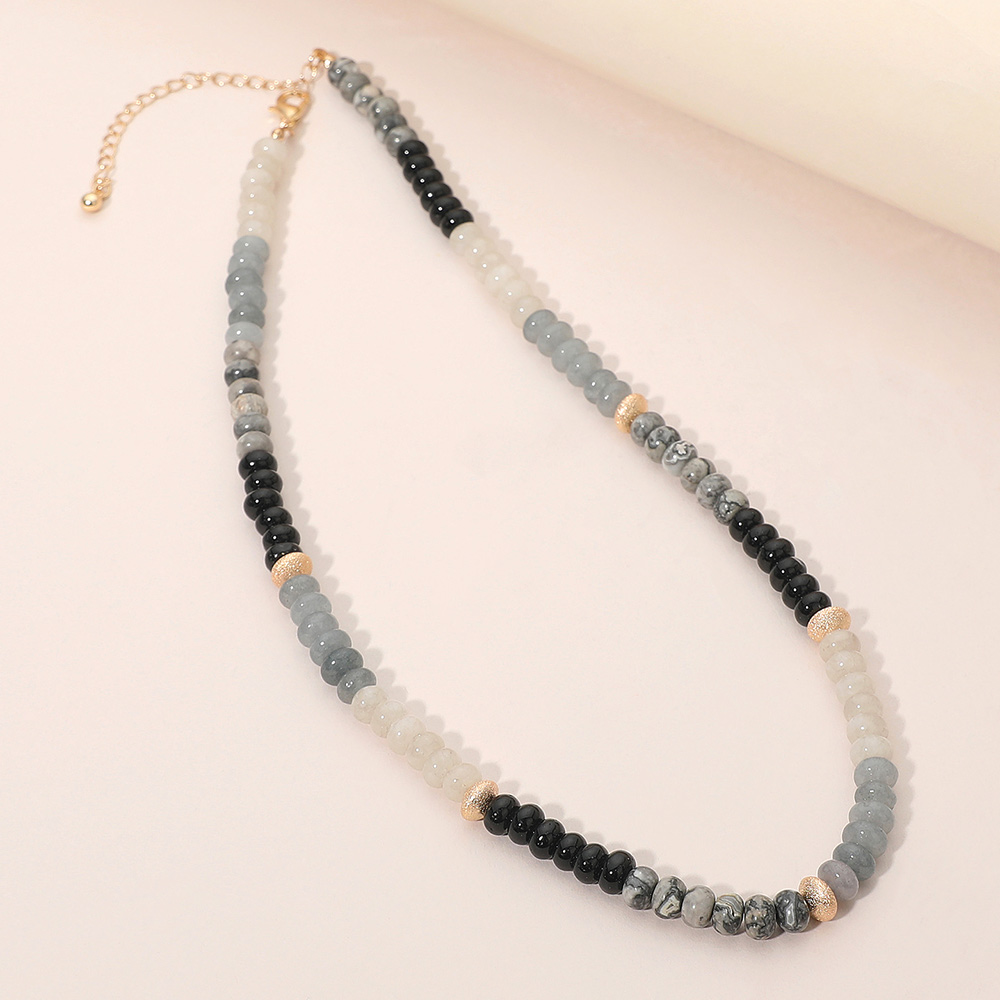 • Elegant beaded necklace featuring round polished beads and gold accent spacers for a refined layered look. Designed for versatile styling, this statement necklace adds sophistication to casual or formal outfits, making it a perfect accessory for any occasion or season.