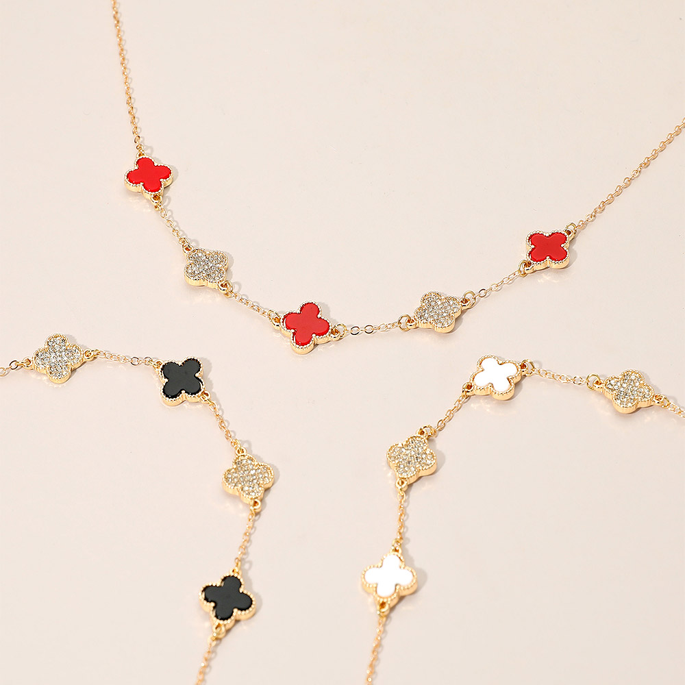 • Add refined elegance to any outfit with this clover charm necklace featuring alternating enamel and crystal-accented charms. Designed with a sleek chain and timeless motif, it’s a versatile piece that complements both casual and dressy looks with effortless sophistication.