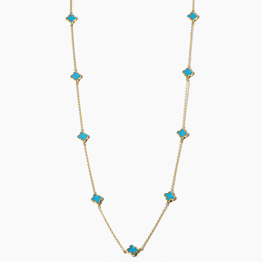 Gold Dipped Brass Metal Natural Stone Quatrefoil Station Necklace