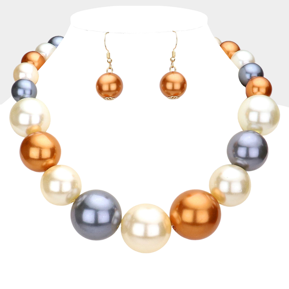 • Elegant graduated bead necklace paired with matching drop earrings for a coordinated, polished look. Designed to create visual balance and timeless appeal, this jewelry set is ideal for statement styling, special occasions, and boutique collections seeking classic silhouettes with versatile, easy-to-wear elegance.