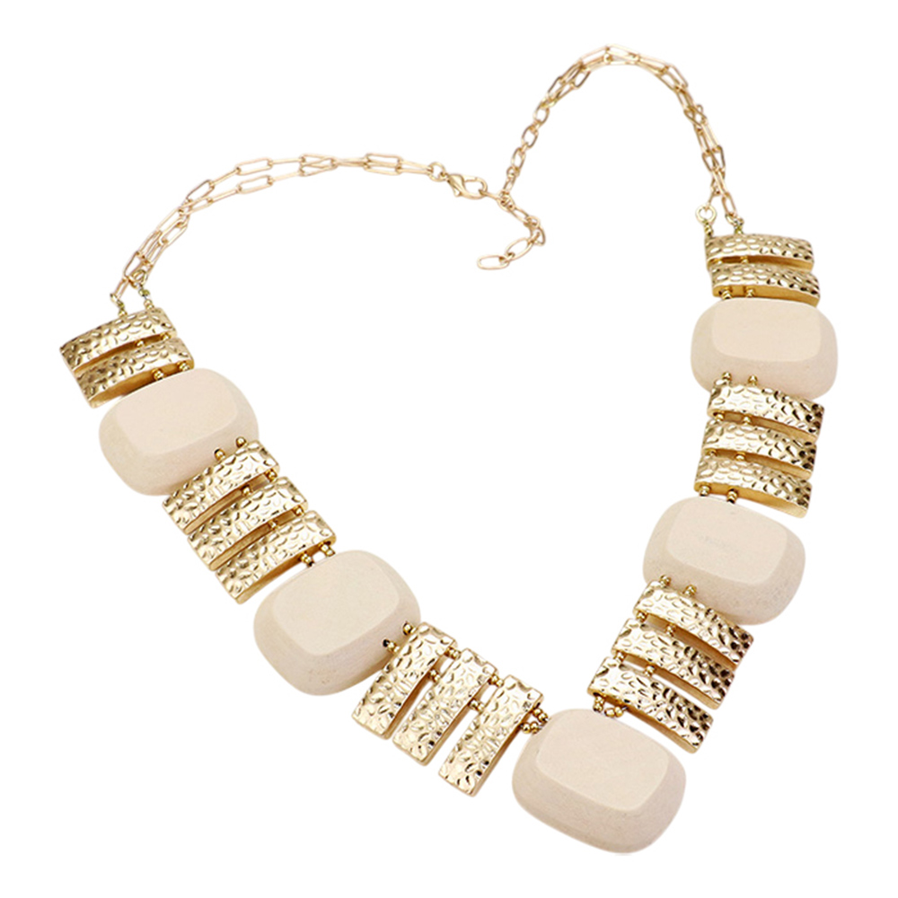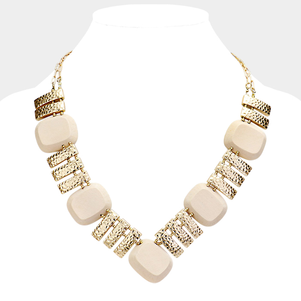 Hammered Bar Wood Bead Collar Statement Necklace