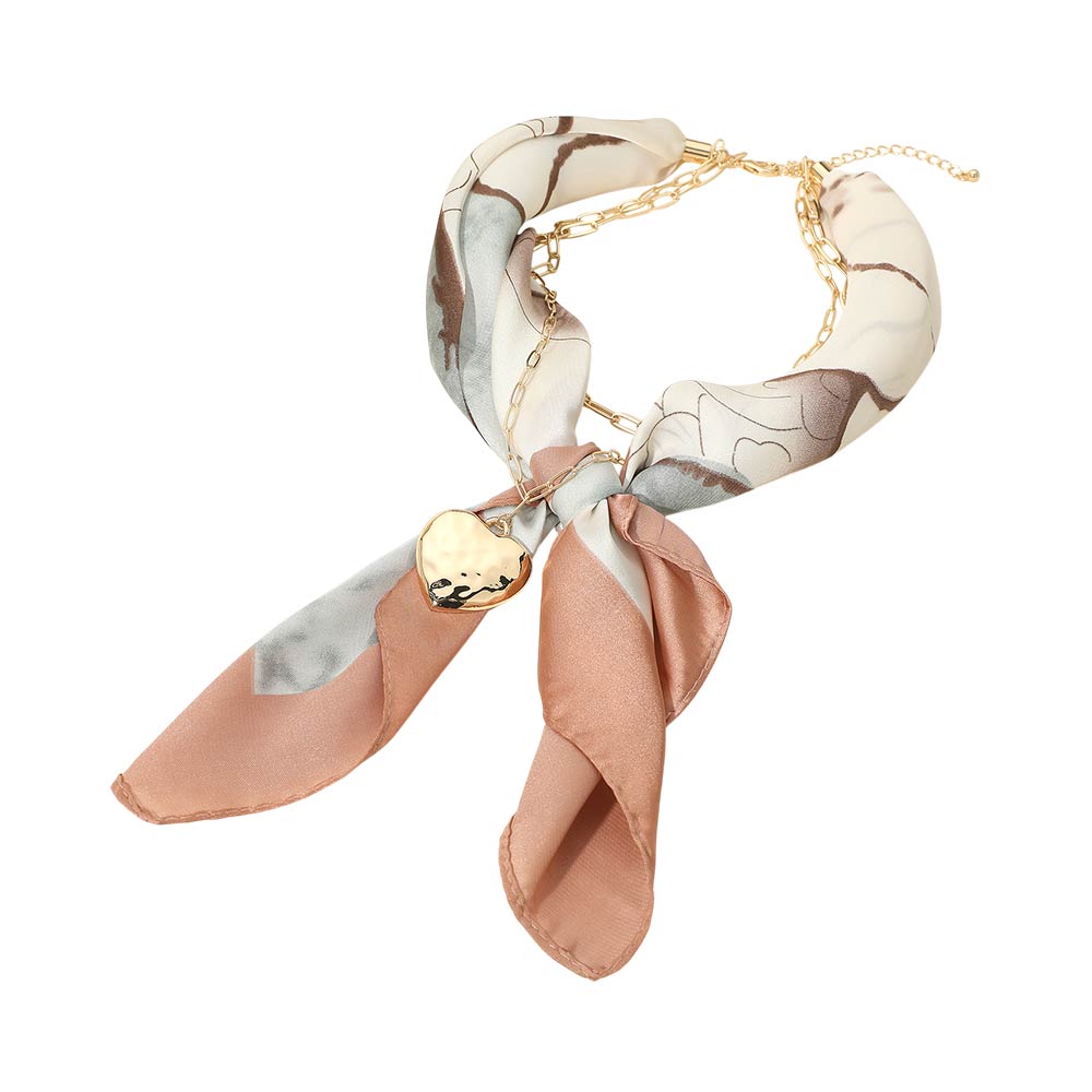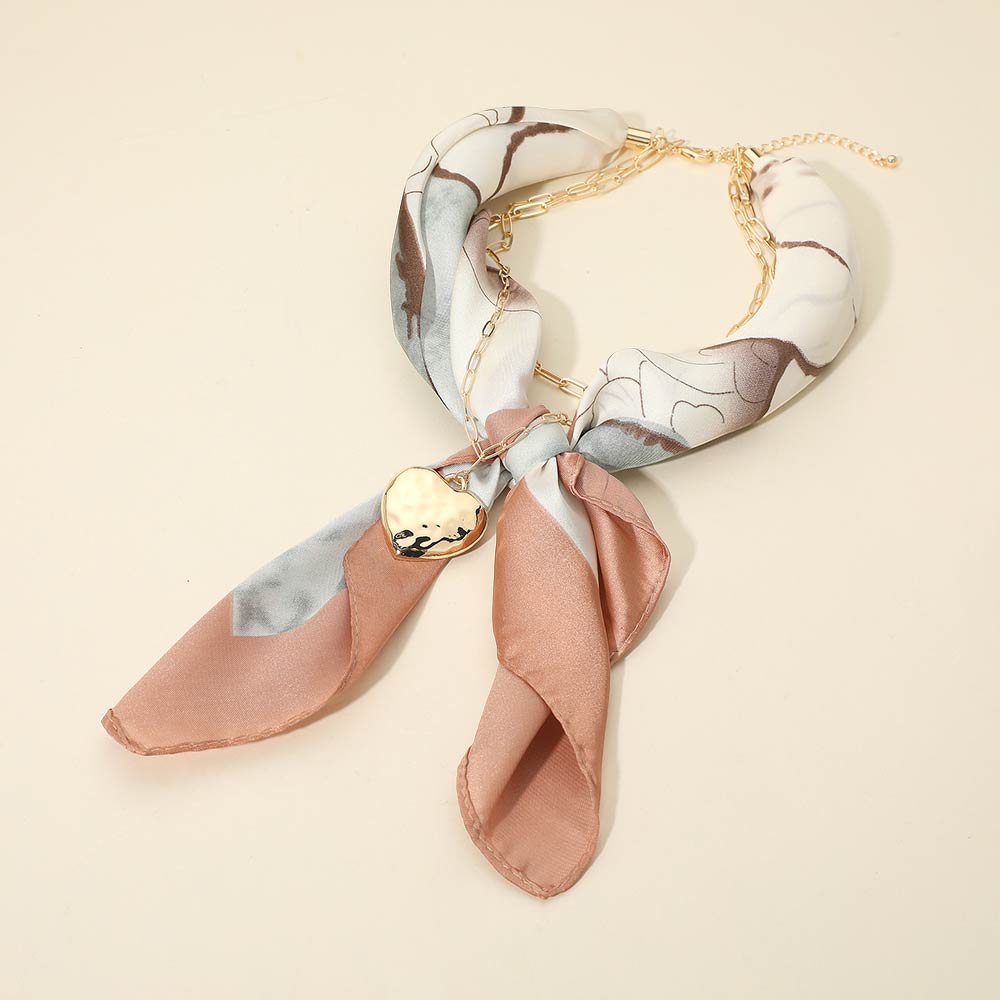 • This chain detail scarf necklace blends a soft draped scarf with a linked accent and heart charm for a refined statement look. Designed to wear as a necklace, it adds effortless polish to casual and dressy outfits, making it a versatile accessory for everyday styling and elevated fashion collections.