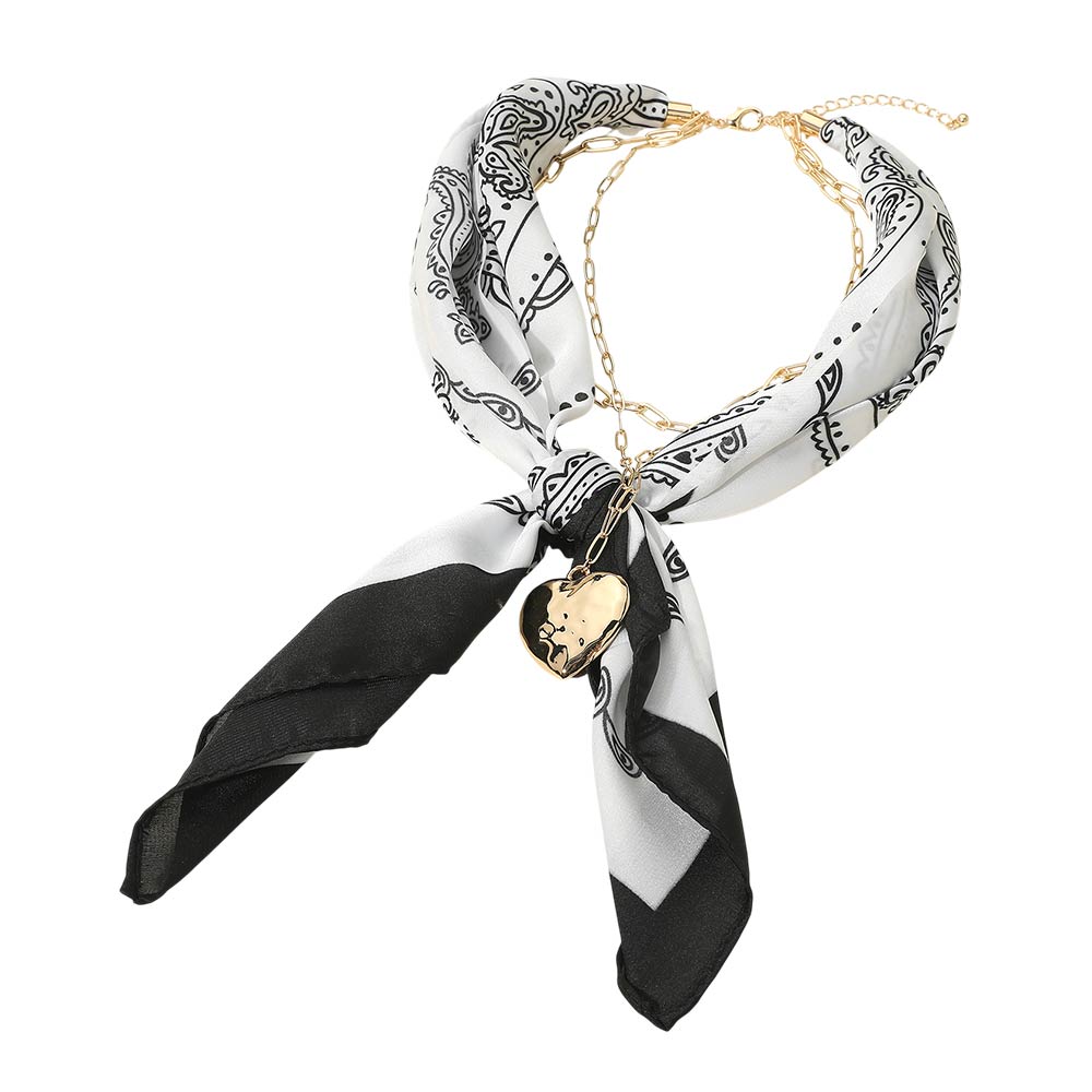 • This chain detail scarf necklace blends a soft draped scarf with a linked accent and heart charm for a refined statement look. Designed to wear as a necklace, it adds effortless polish to casual and dressy outfits, making it a versatile accessory for everyday styling and elevated fashion collections.