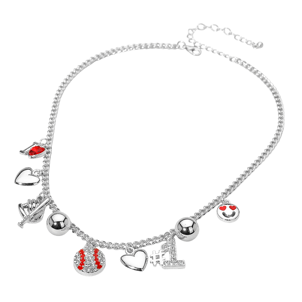 Heart Smile Number One Baseball Charm Station Necklace Heart Smile Number One Baseball Charm Station Necklace Heart Smile Number One Baseball Charm Station Necklace