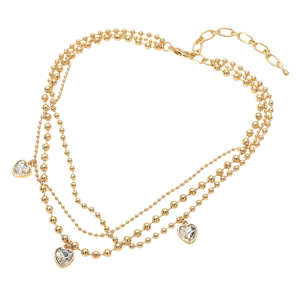 Heart Stone Charm Station Triple Layered Beaded Chain Necklace Heart Stone Charm Station Triple Layered Beaded Chain Necklace Heart Stone Charm Station Triple Layered Beaded Chain Necklace