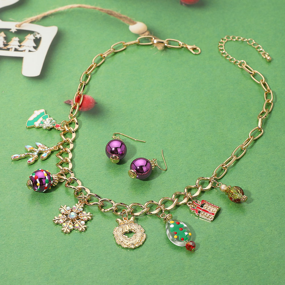 • Holiday charm jewelry set featuring a playful necklace with seasonal pendants and matching drop earrings. A whimsical and sparkling accessory perfect for parties, gifting, and celebrating in festive style.
