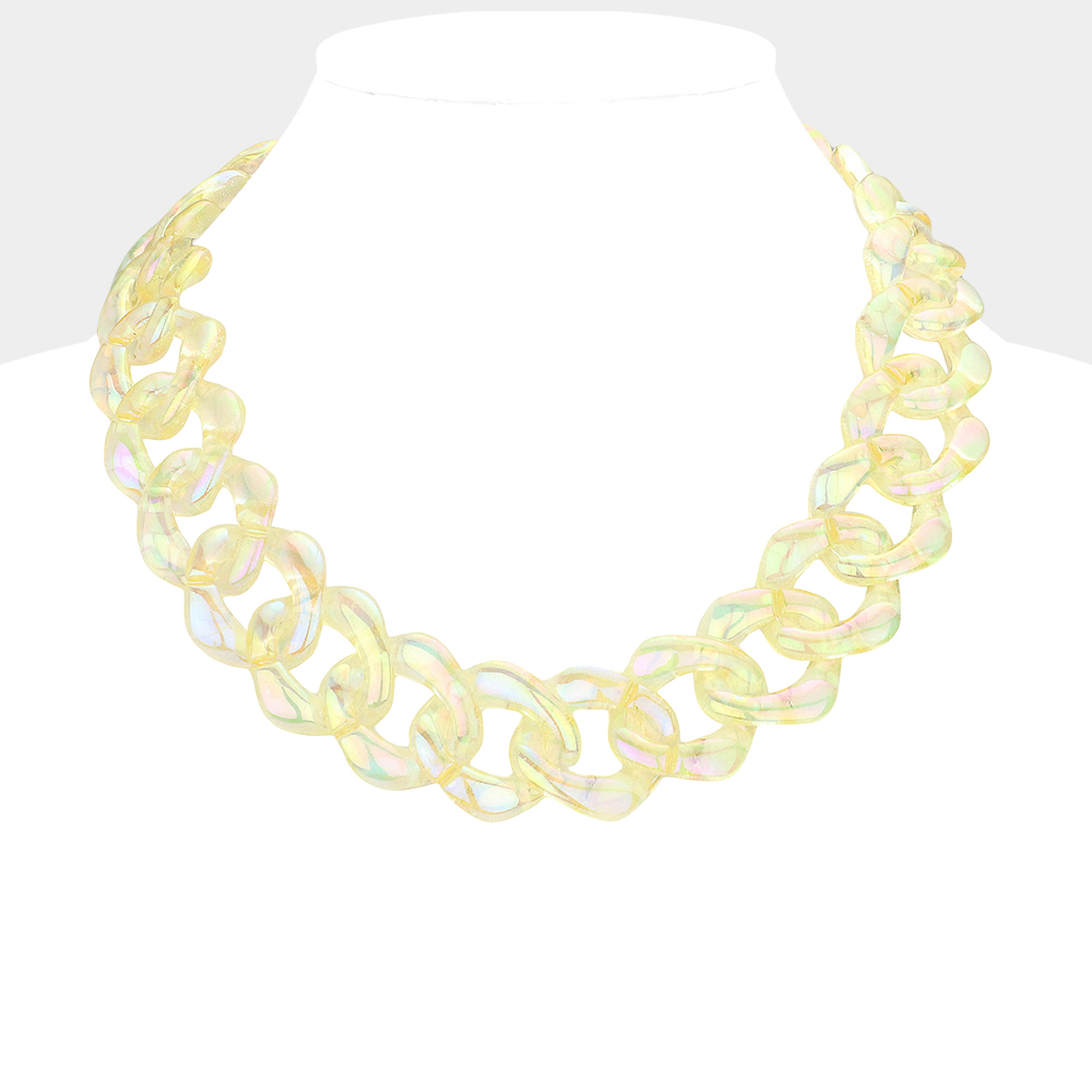 Rhinestone Rectangular Bead Wood Bar Statement Necklace