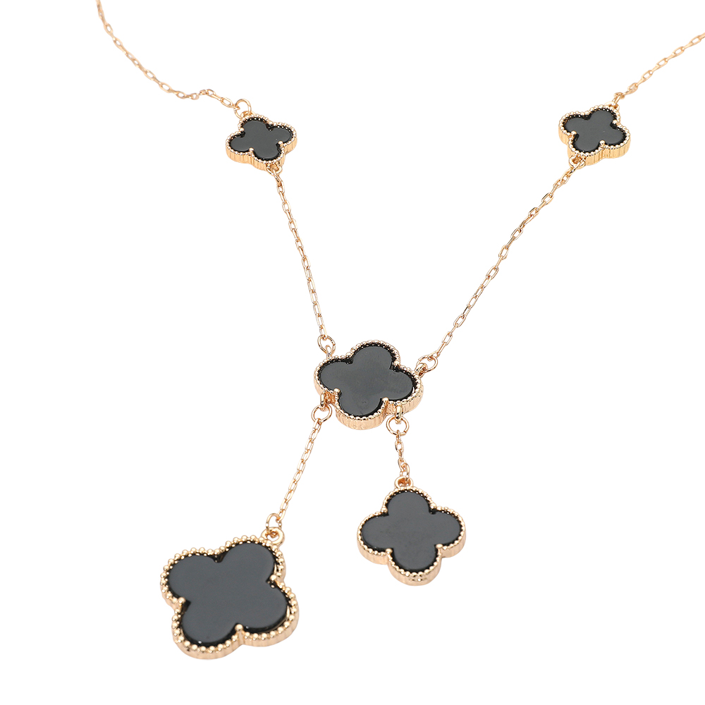 • Stylish necklace featuring multiple quatrefoil pendants in a cascading layered design. The elegant drop detail adds movement and sophistication, making it perfect for both casual and formal wear, offering a timeless charm that enhances any outfit effortlessly.
