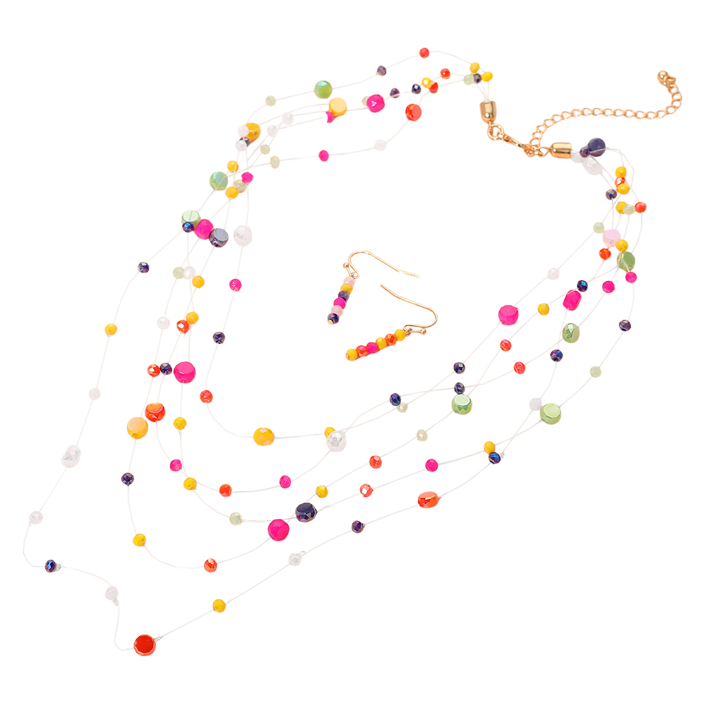 Lightweight Layered Floating Bead Statement Necklace