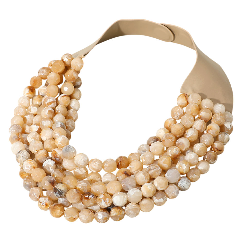 Marbled Faceted Ball Beaded Multi Layered Faux Leather Magnetic Necklace