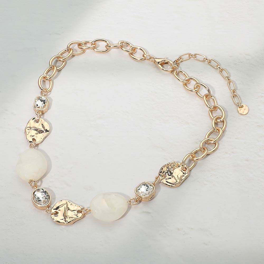 Marbled Resin Pebble Hammered Metal Plate Stone Cluster Link Necklace