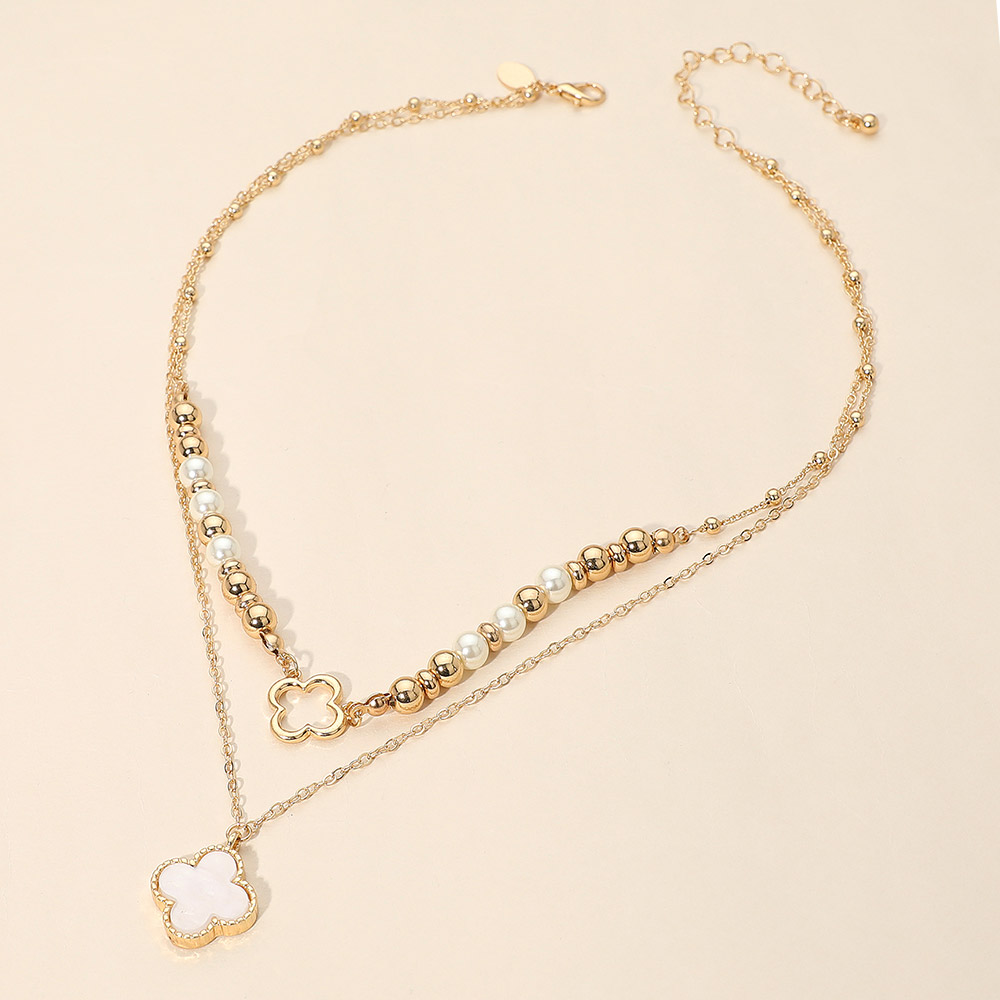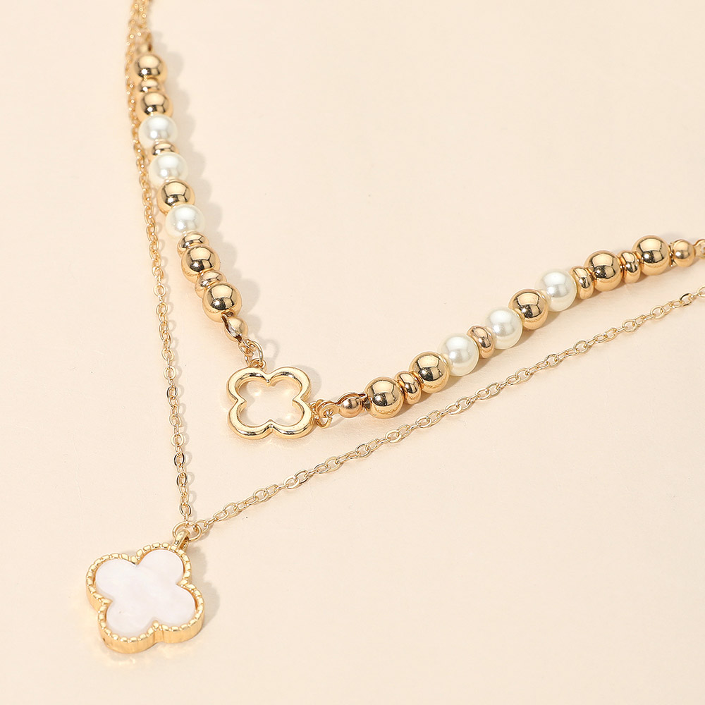 Mother of Pearl Quatrefoil Pendant Accent Pearl Beaded Layered Necklace Mother of Pearl Quatrefoil Pendant Accent Pearl Beaded Layered Necklace Mother of Pearl Quatrefoil Pendant Accent Pearl Beaded Layered Necklace