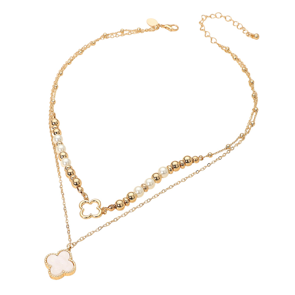 Mother of Pearl Quatrefoil Pendant Accent Pearl Beaded Layered Necklace