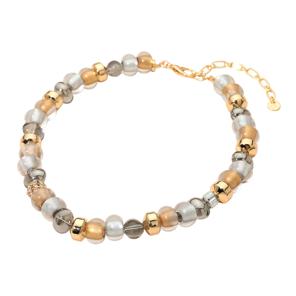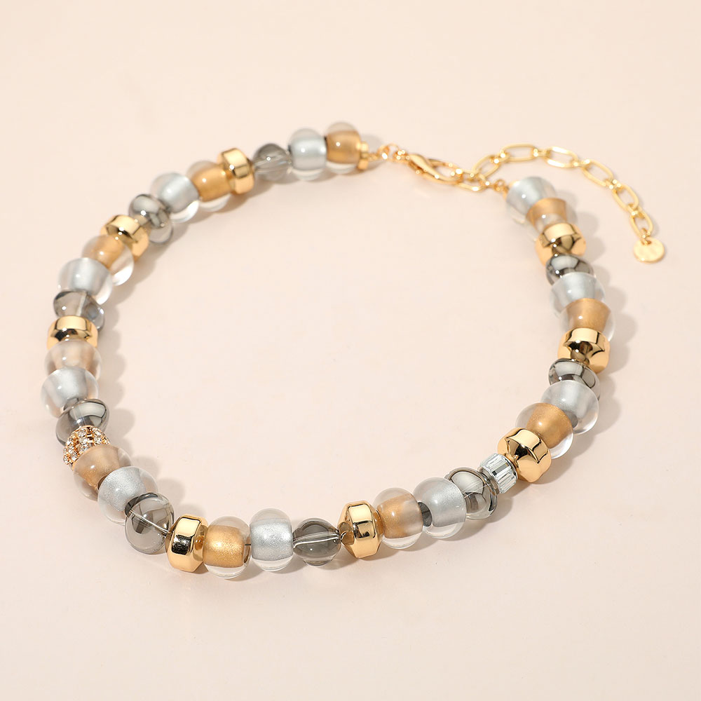 Details • Necklace Size : 16" + 3.5" L • Decor Size : 0.6" L • Elegant beaded necklace featuring a mix of smooth and faceted beads with sparkling accents. Designed with an adjustable chain for a perfect fit, this versatile piece adds a refined touch to both casual and formal outfits. • Lead and Nickel Compliant