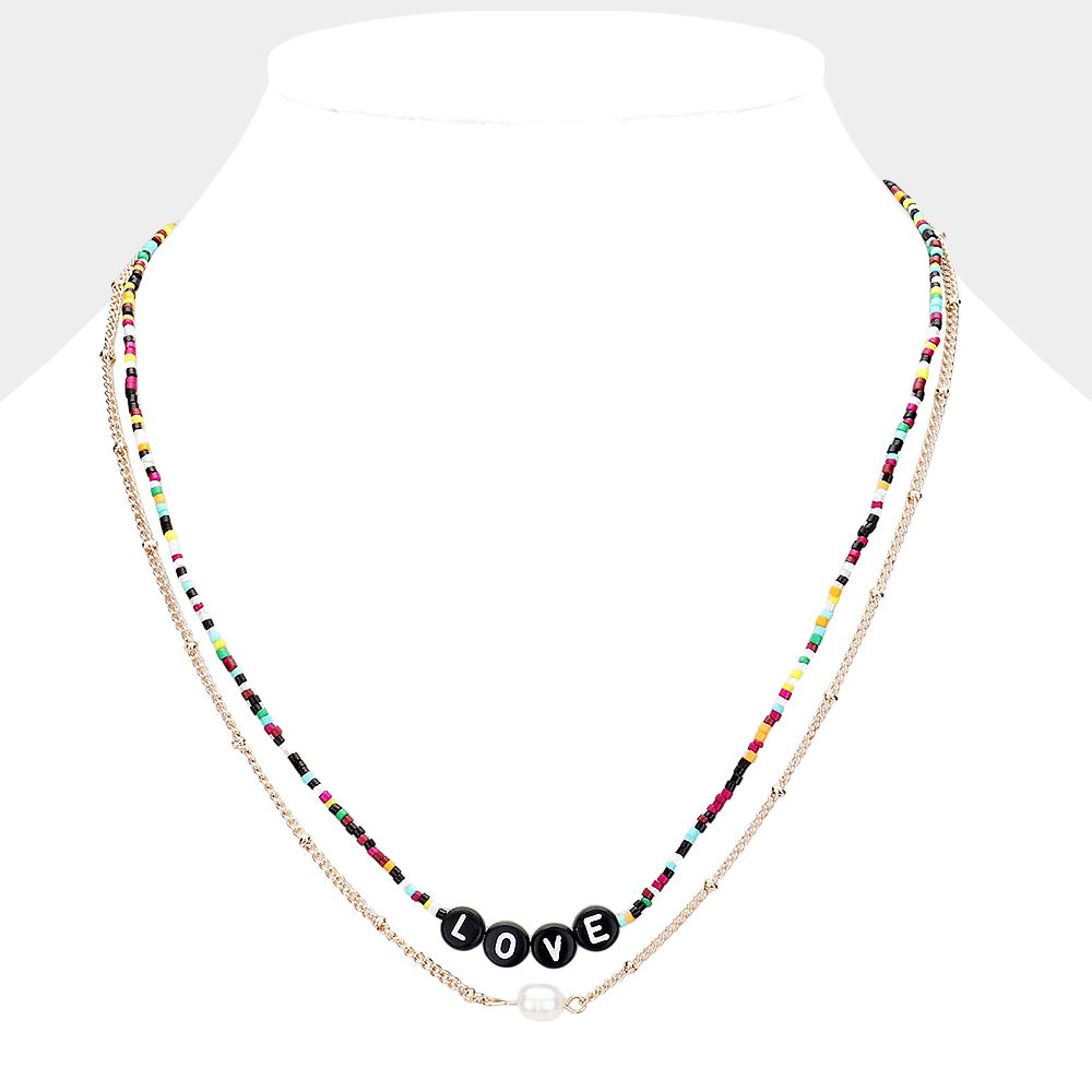 Multi Color Bead Statement Love Pearl Layered Necklace