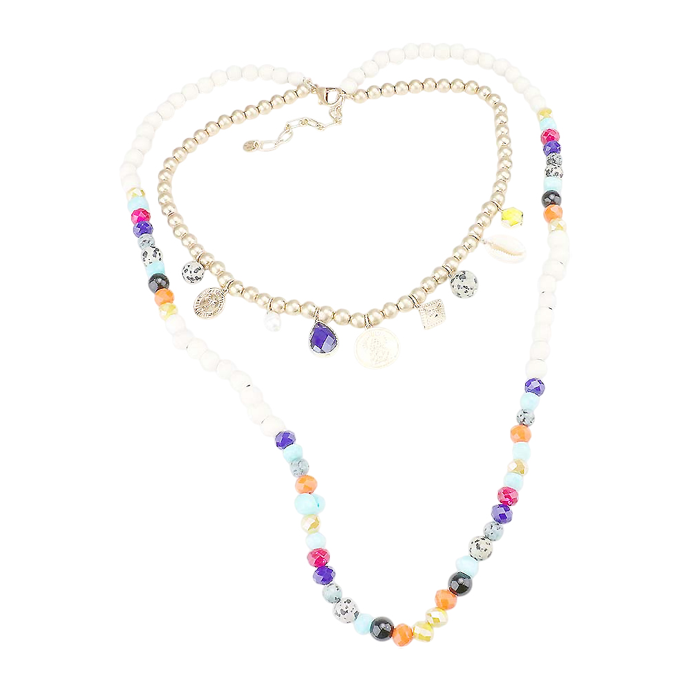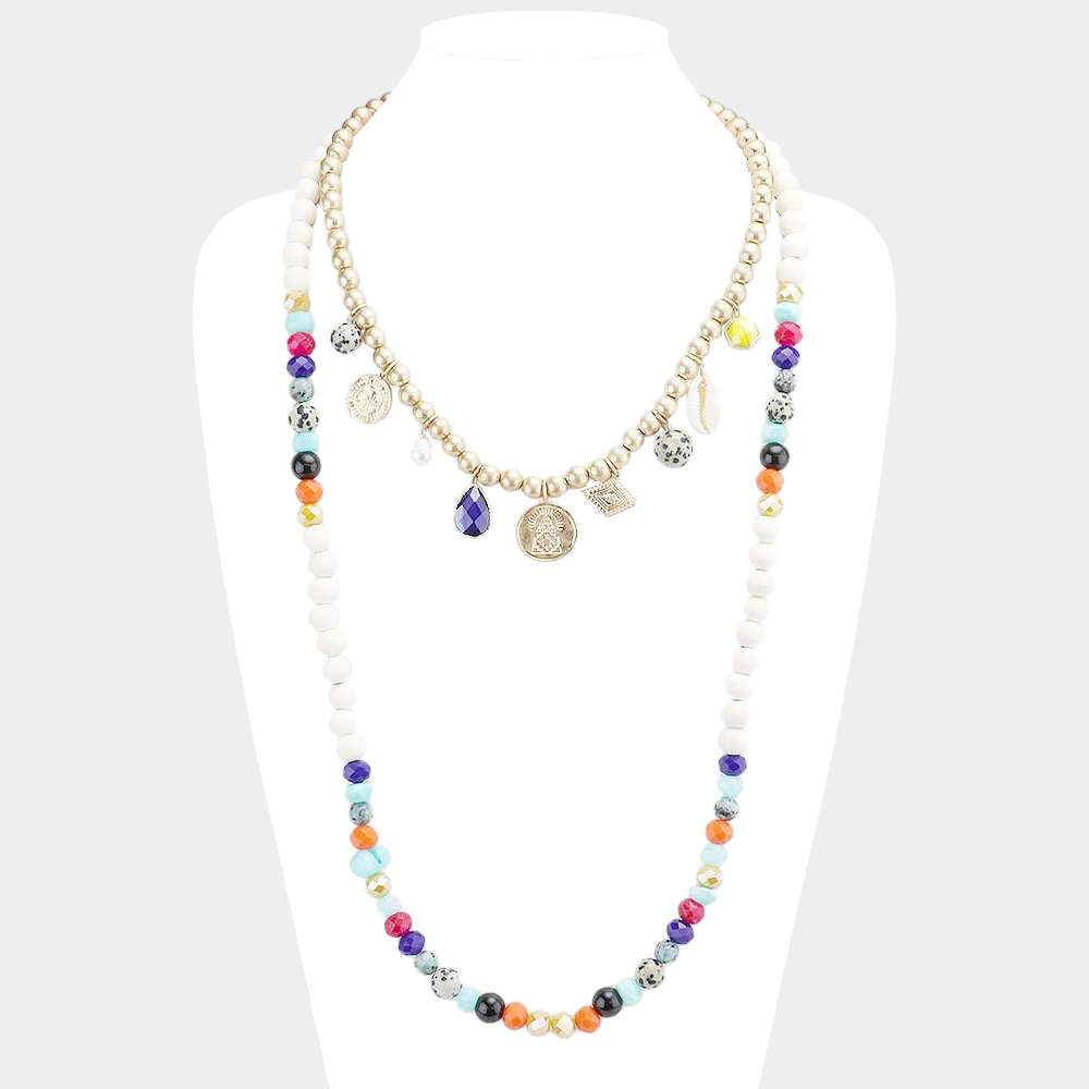 Oversized Wooden Teardrop Charm Chunky Double Layered Statement Necklace
