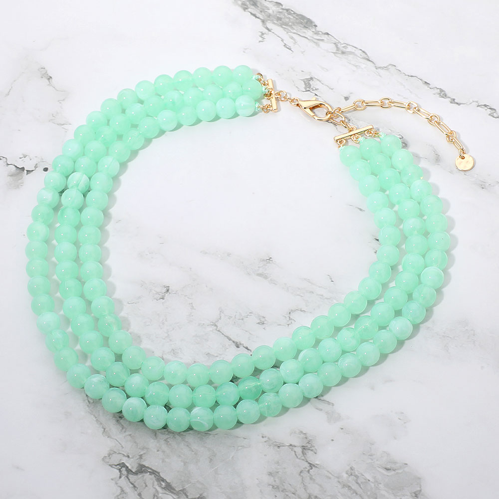 Multi Strand Marbled Resin Ball Beaded Layered Statement Necklace