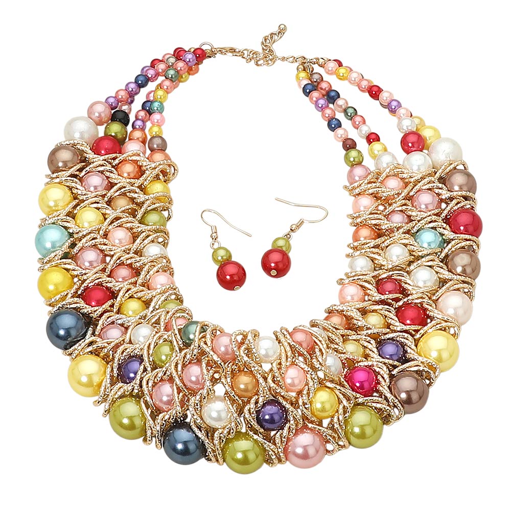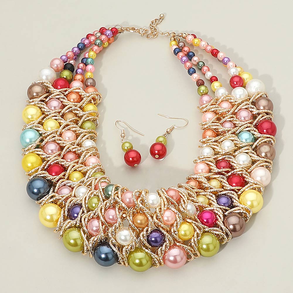 • Elegant multi-strand statement necklace set designed with layered pearl detailing and coordinating drop earrings. Creates a bold yet refined look ideal for formal events, weddings, parties, and boutique gift collections. A timeless accessory that elevates dresses, evening wear, and special occasion styling.