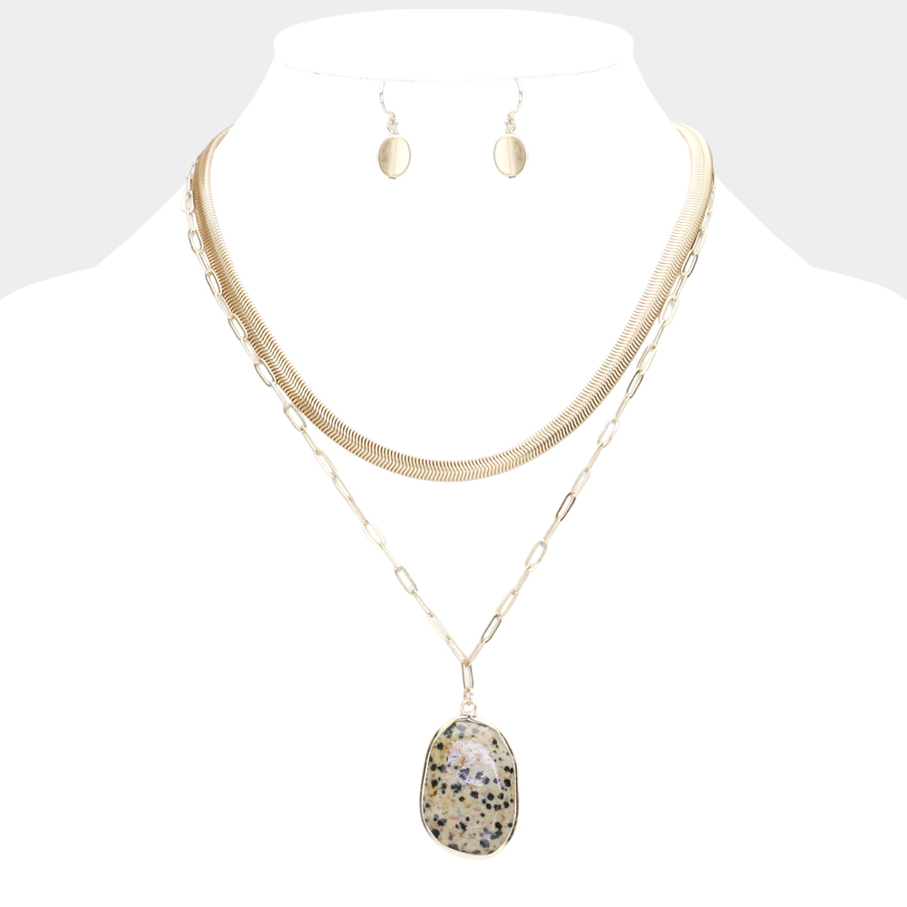 2PCS - Chunky Marbled Resin Multi Shape Pebble Beaded Stretch Multi Layered Bracelets