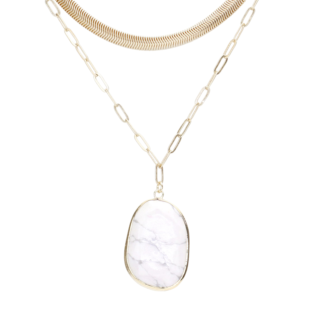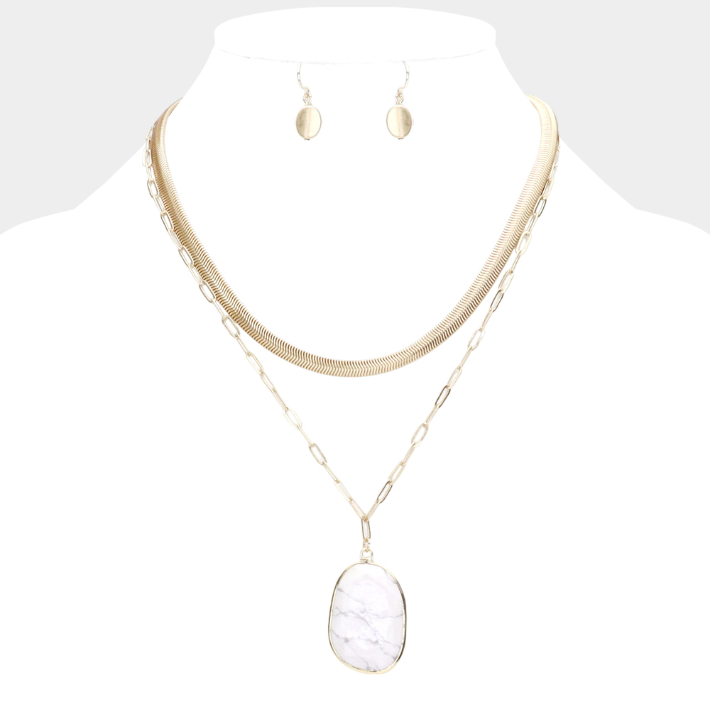 Rhinestone Trimmed Semi Precious Round Pendant Necklace