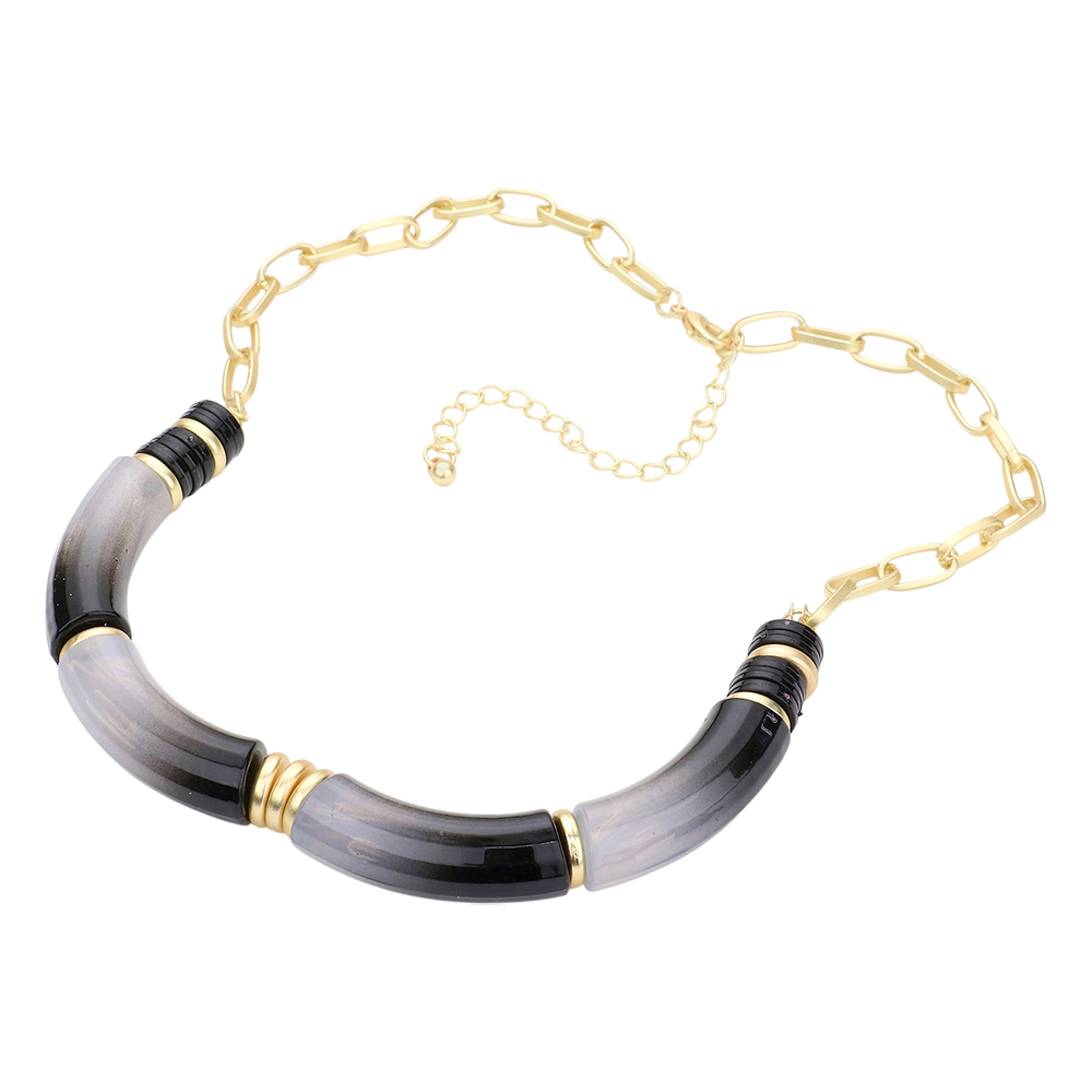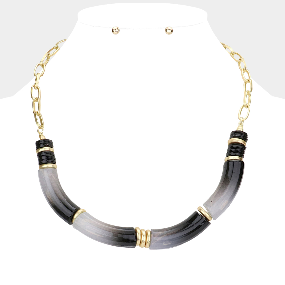 Faux Leather Metal Triple Abstract Plate Link Dangle Earrings