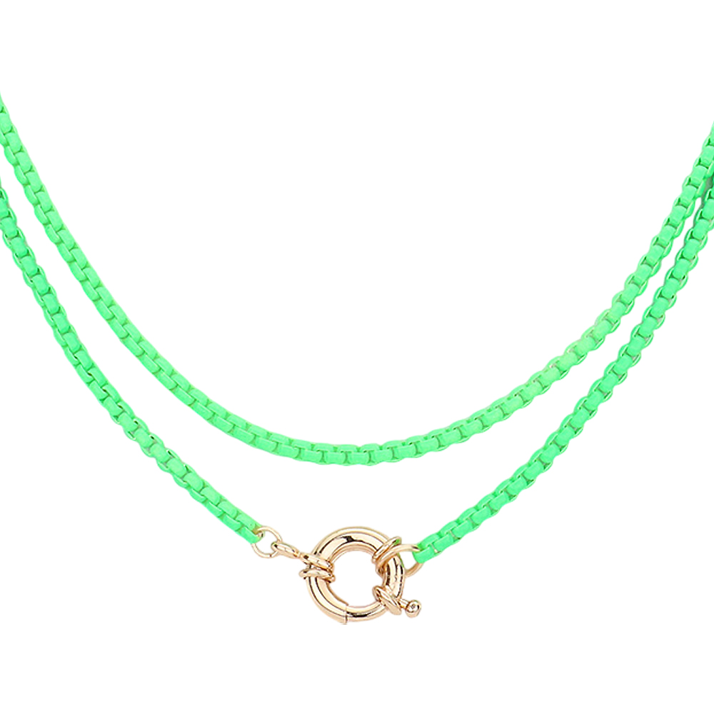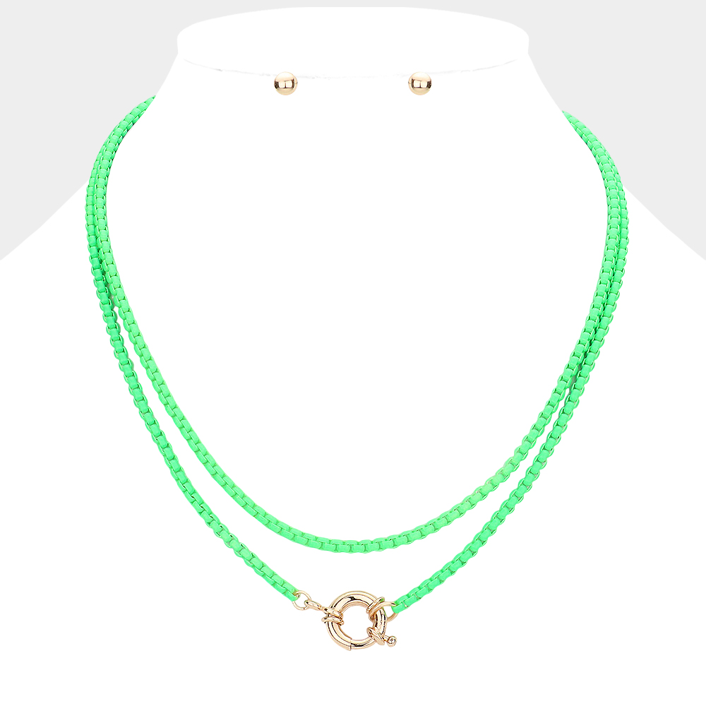 Open Metal Circle Pendant Double Layered Chain Necklace