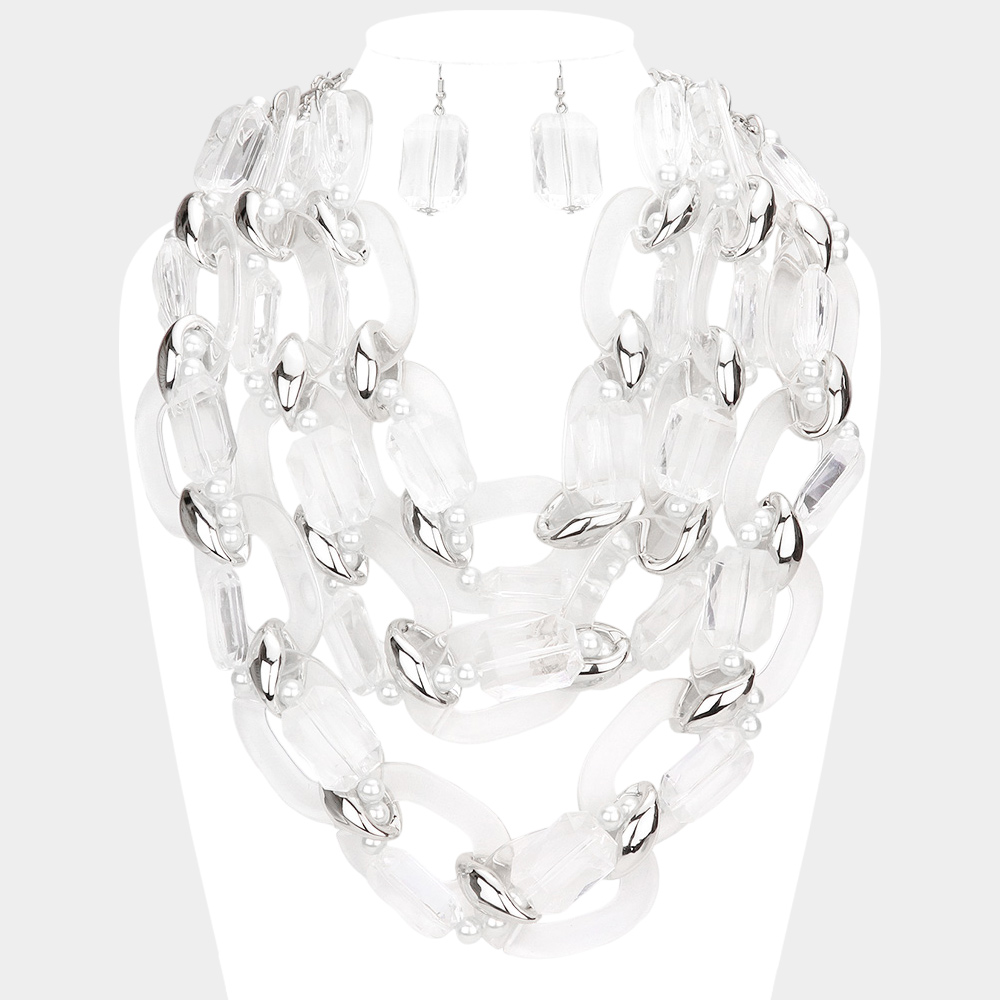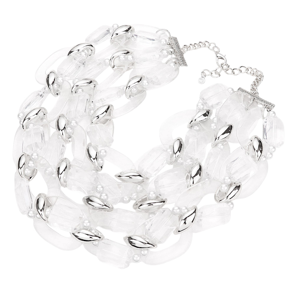 7Rows Wide Faceted Round Clear Lucite Beaded Stretch Bracelet