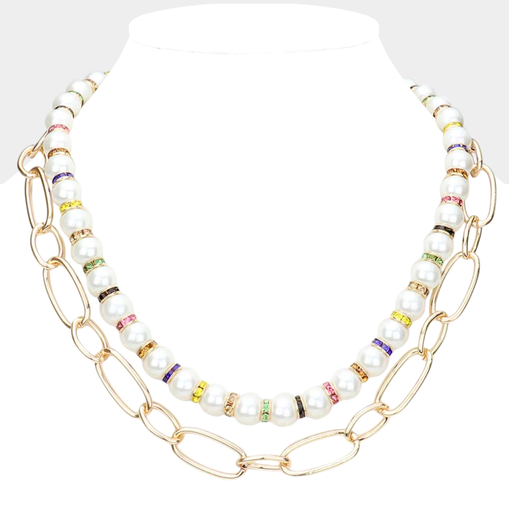 Chunky Pearl Beaded Multi Layered Statement Necklace