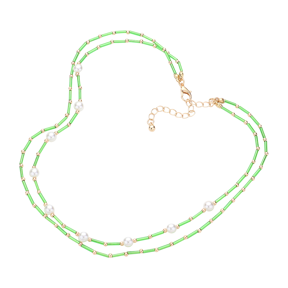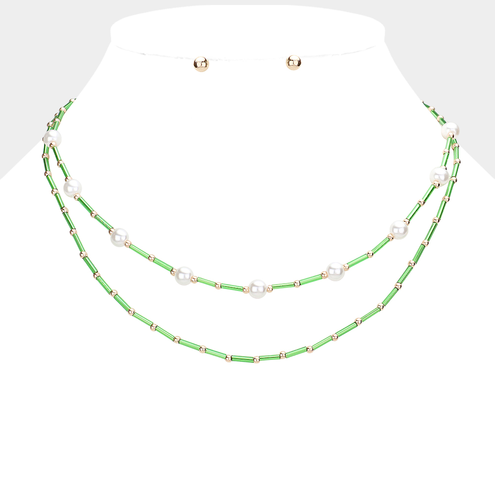 Metal Heart Pendant Freshwater Pearl Link Double Layered Necklace