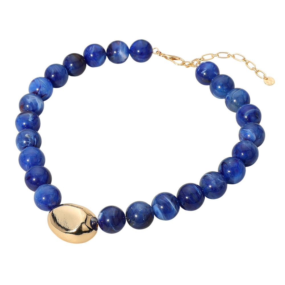 Details • Necklace Size : 19" + 3.5" L • Decor Size : 1" L • Make a bold impression with this beaded statement necklace, featuring smooth round beads and a polished metallic accent. Perfect for elevating your style with a touch of artistic flair and modern charm. • Lead and Nickel Compliant