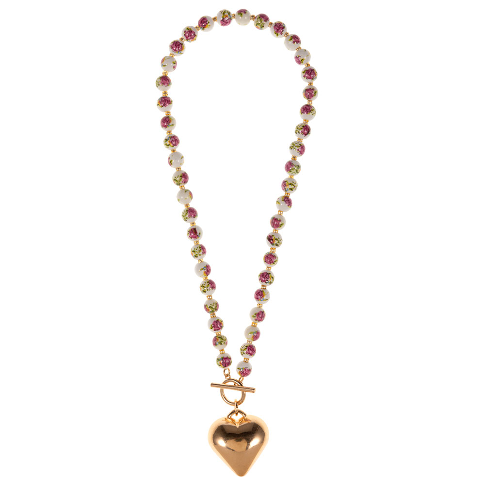 Details • Necklace Size : 15.5" + 1" L • Pendant Size : 1.4" X 1.6" • Toggle Closure • Charming beaded necklace finished with a heart pendant and secure toggle-style closure for an elegant yet playful look. Designed to elevate everyday outfits or special occasion styling, this necklace offers boutique-friendly appeal with a timeless silhouette that customers love for gifting, layering, or statement wear. • Lead and Nickel Compliant