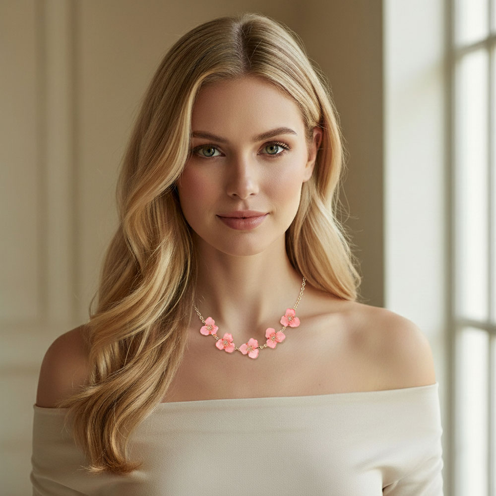 • Enhance your style with this floral bloom necklace featuring sculpted petal charms and radiant crystal centers. Designed with a graceful chain for a refined finish, it adds a touch of elegance and natural beauty, perfect for both everyday wear and special occasions.