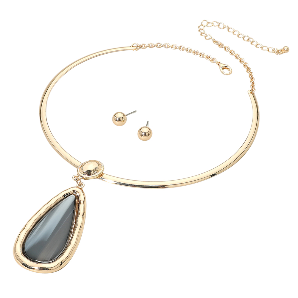 Resin Teardrop Pendant Accent Collar Statement Necklace