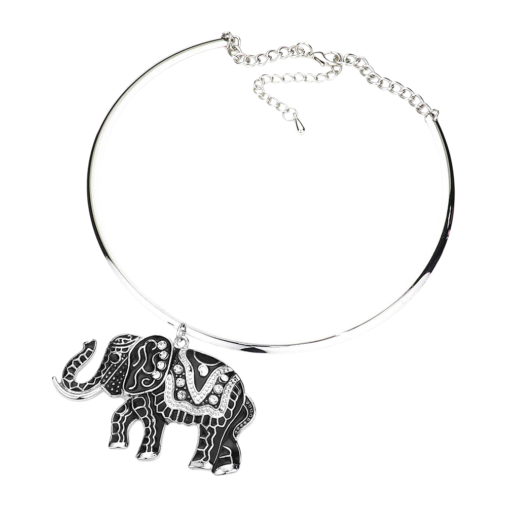 Rhinestone Embellished Enamel Elephant Pendant Necklace