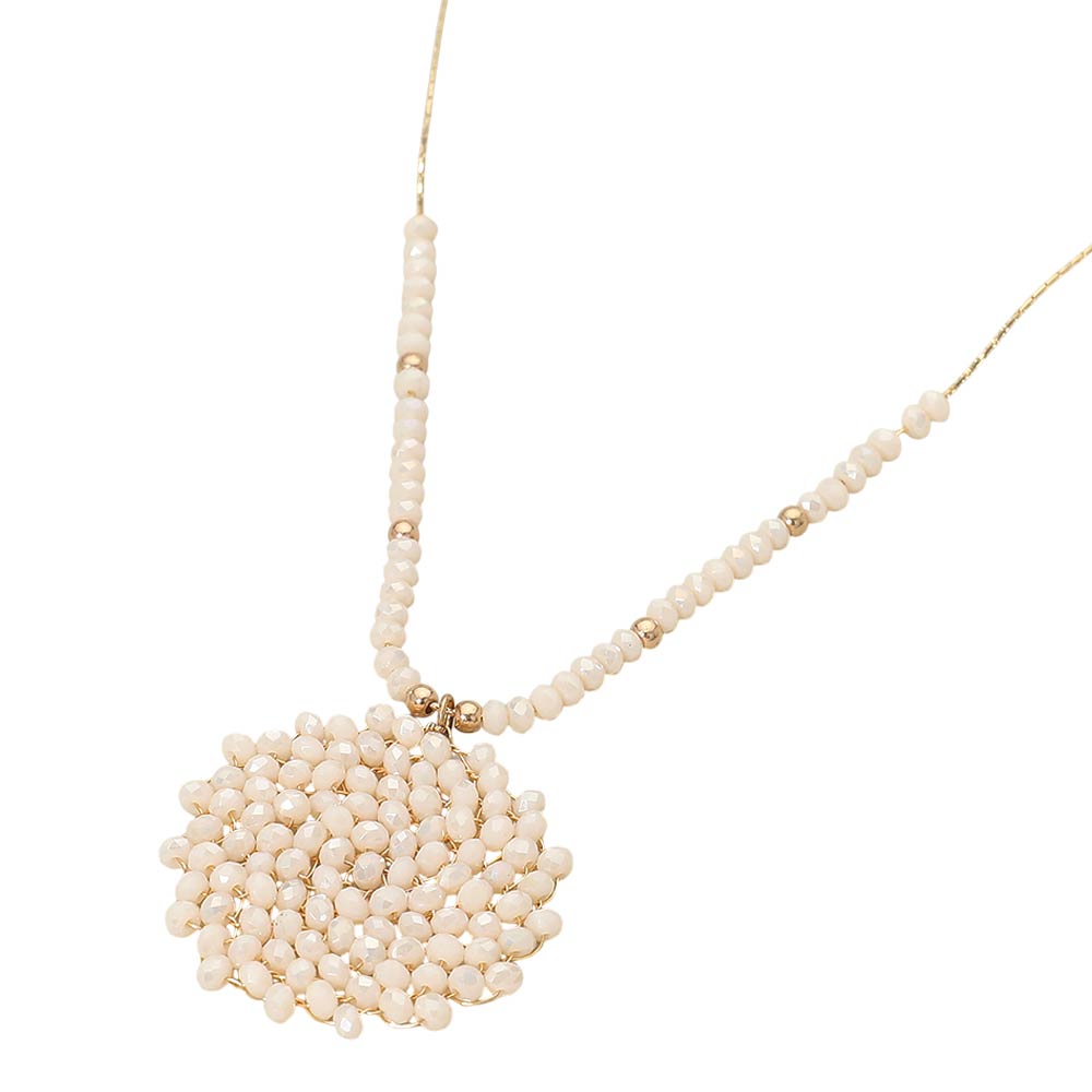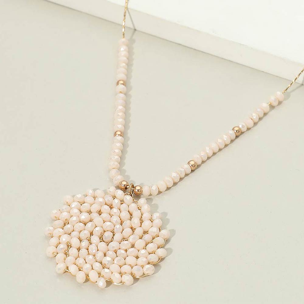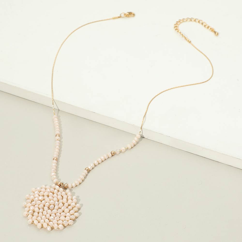 Details • Necklace Size : 16.5" + 3.25" L • Pendant Size : 1.4" X 1.4" • This beaded statement pendant necklace features a detailed round focal design paired with a delicately beaded strand for balanced visual appeal. Created to elevate everyday outfits, it layers beautifully or stands out on its own. A versatile accessory for boutiques seeking stylish, trend-forward pieces with a handcrafted look and timeless wearability. • Lead and Nickel Compliant