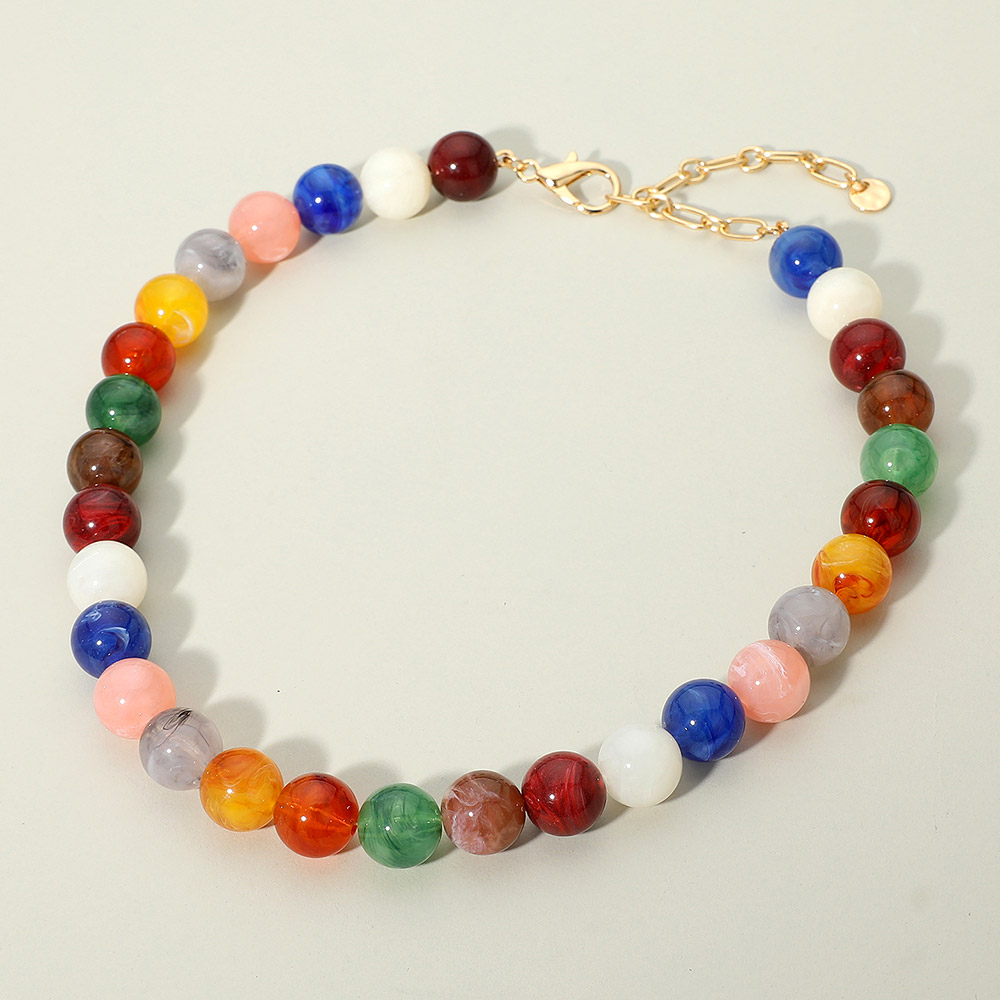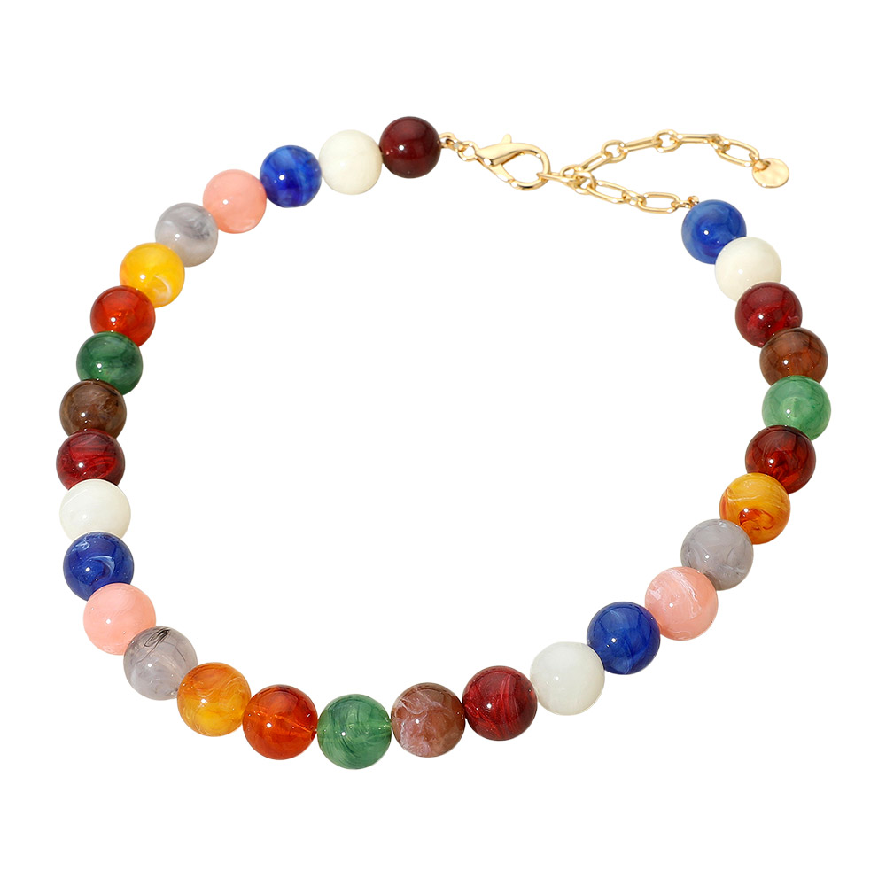 Details • Necklace Size : 17" + 3" L • Decor Size : 0.5" L • Add a touch of earthy elegance with this 17.5" round beaded necklace. Featuring polished natural stones in a variety of tones, each bead showcases unique patterns and depth. Finished with a secure clasp and extender, this versatile piece is perfect for layering or wearing solo. • Lead and Nickel Compliant
