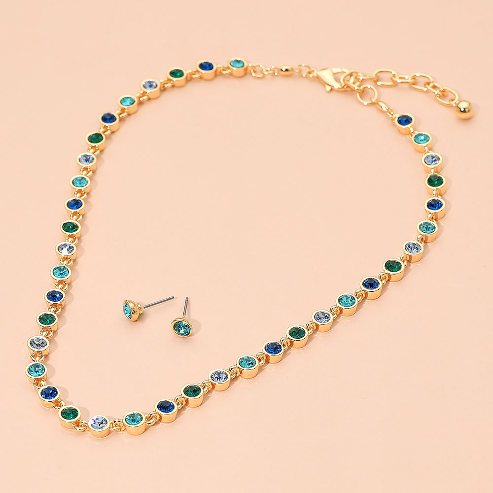 Details • Necklace Size : 16" + 2" L • Decor Size : 0.25" L • Earrings Size : 0.25" L • Add a touch of sparkle to your style with this rhinestone necklace and stud earring set. Featuring dazzling stones in a refined design, this elegant duo offers timeless sophistication for both everyday wear and special occasions, enhancing any outfit with radiant charm. • Lead and Nickel Compliant