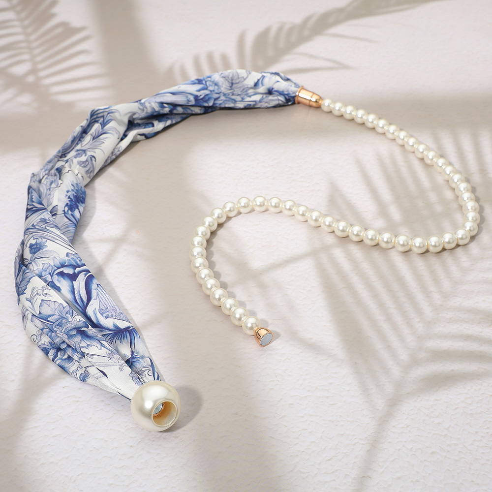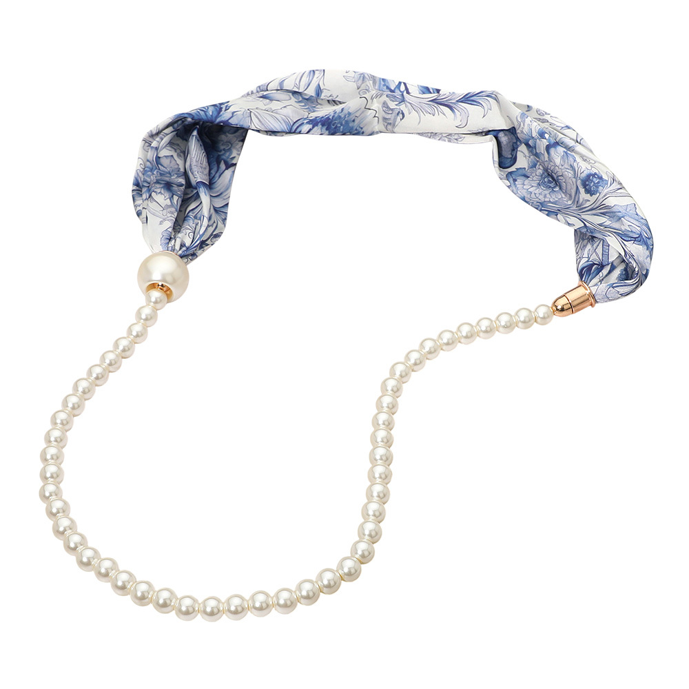 SECRET BOX_Floral Print Fabric Scarf Pearl Magnetic Necklace