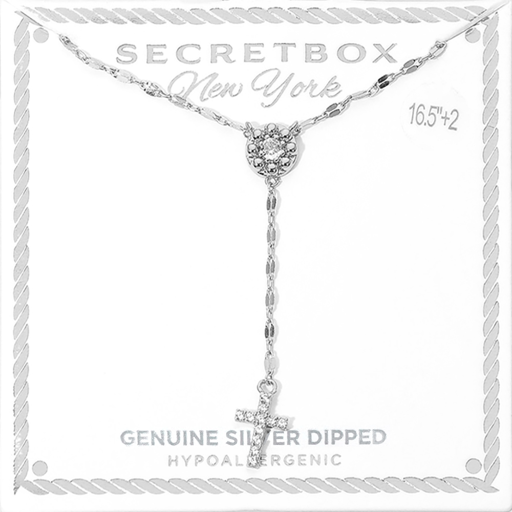 Details • Necklace Size : 16.5" + 2" L • Decor Size : 2" • Elegant drop pendant necklace featuring a refined cross charm suspended from a decorative chain design. Lightweight and comfortable with an adjustable length, it’s perfect for everyday wear, layering, and special occasions. A timeless accessory that adds meaningful style, ideal for gifting and polished, modern looks. • Sterling Silver Dipped • Hypoallergenic