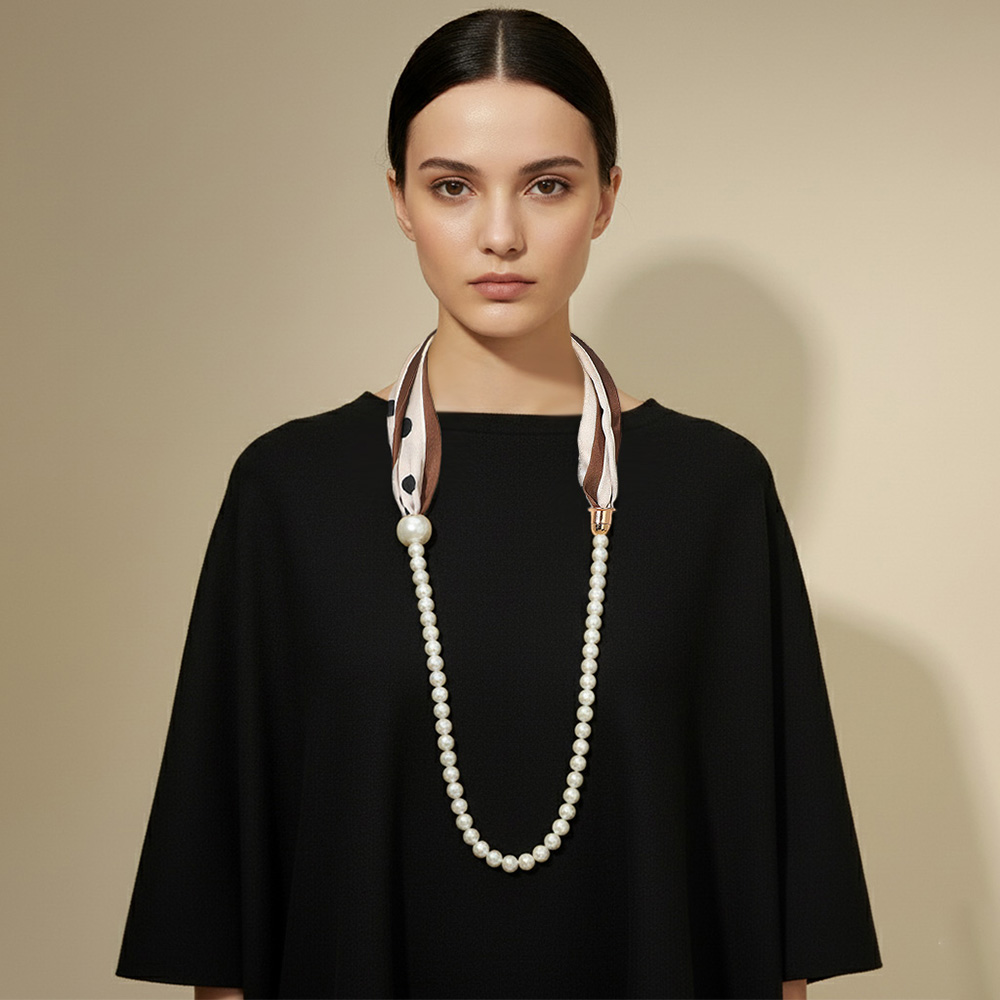 • Stylish beaded necklace enhanced with a polka dot patterned scarf accent, blending modern design with timeless charm. Ideal for elevating both casual and formal outfits, this elegant accessory adds a refined touch of sophistication and individuality to any look.