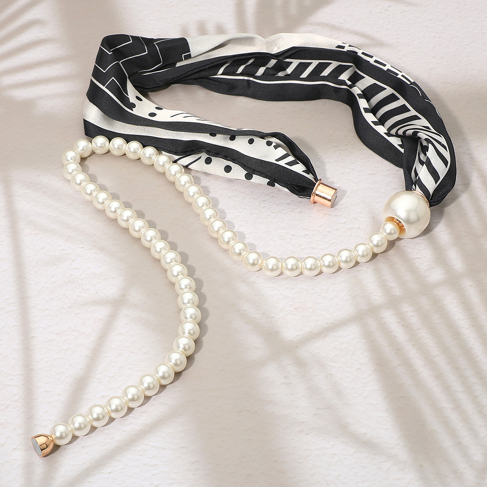 SECRET BOX_Pattern Print Fabric Scarf Pearl Magnetic Necklace