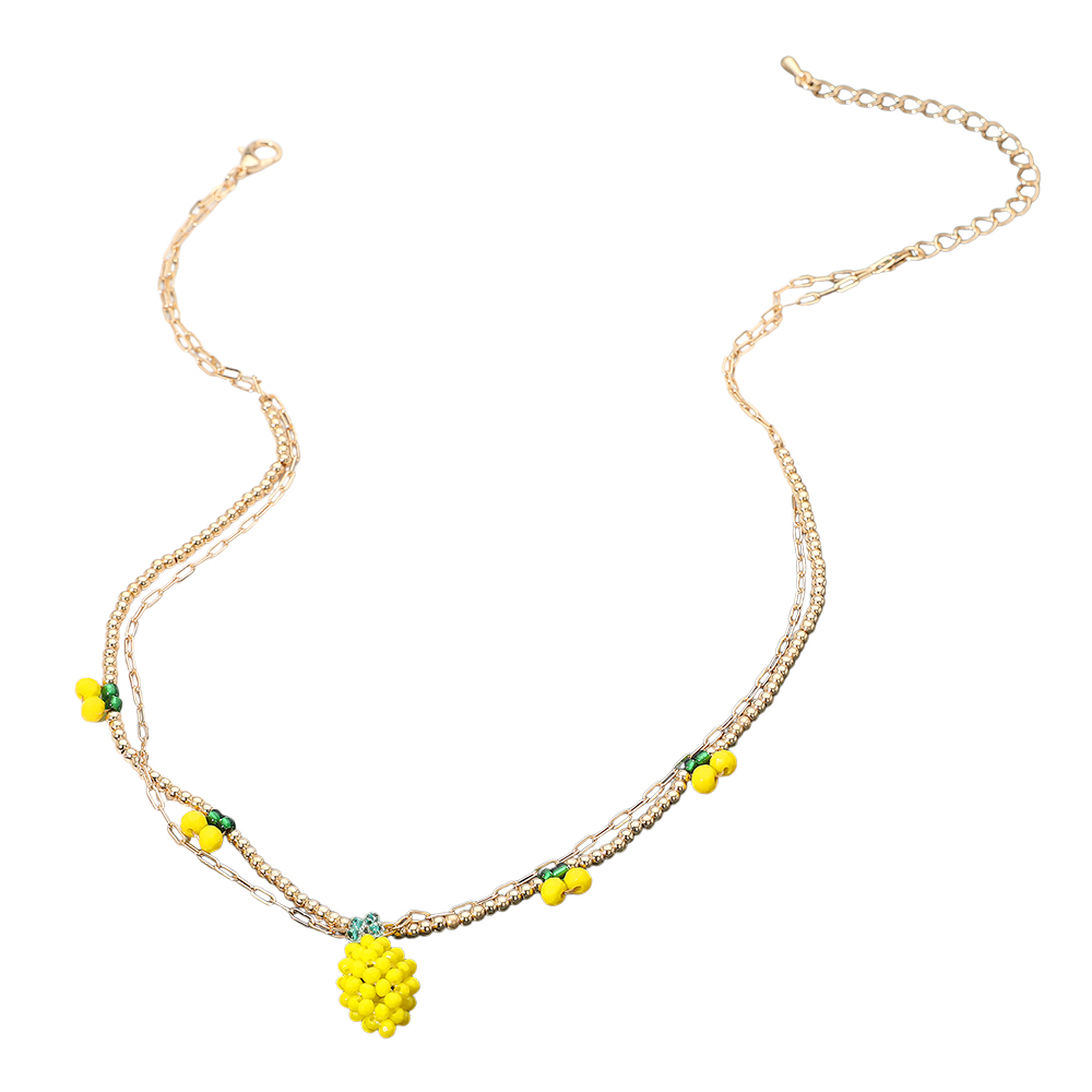 Enamel Heart Lock Cherry Metal Bow Bear Pendant Double Layered Necklace