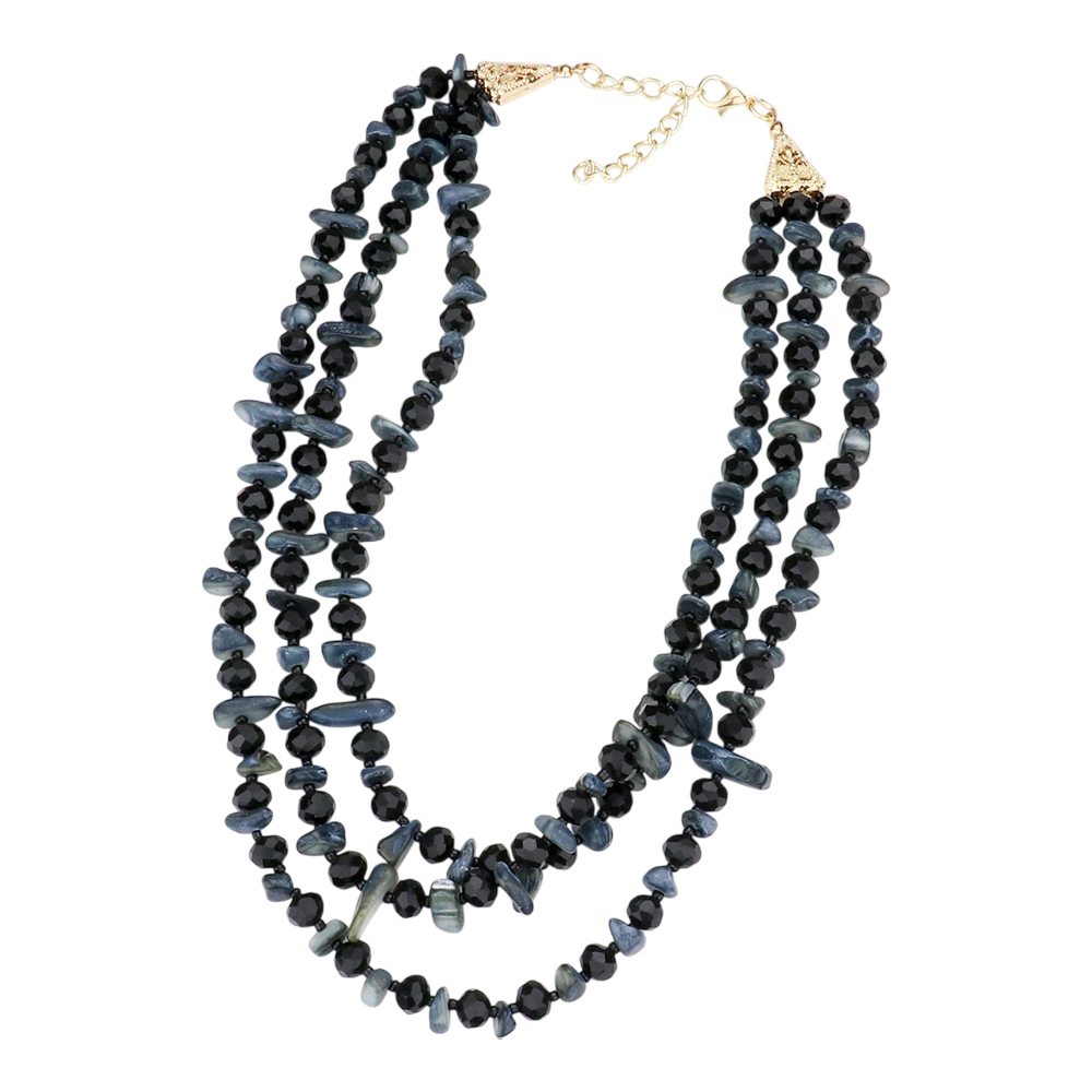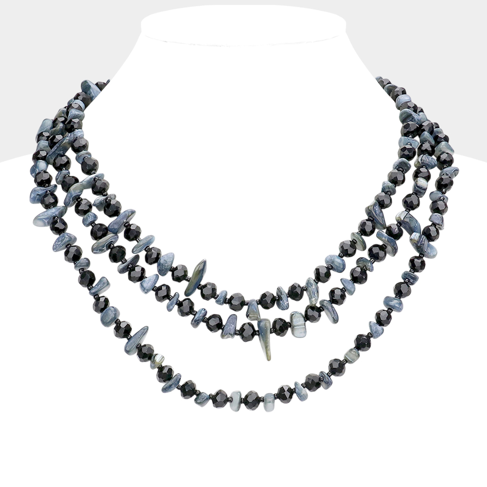 Shell Stone Faceted Beaded Triple Layered Bib Necklace