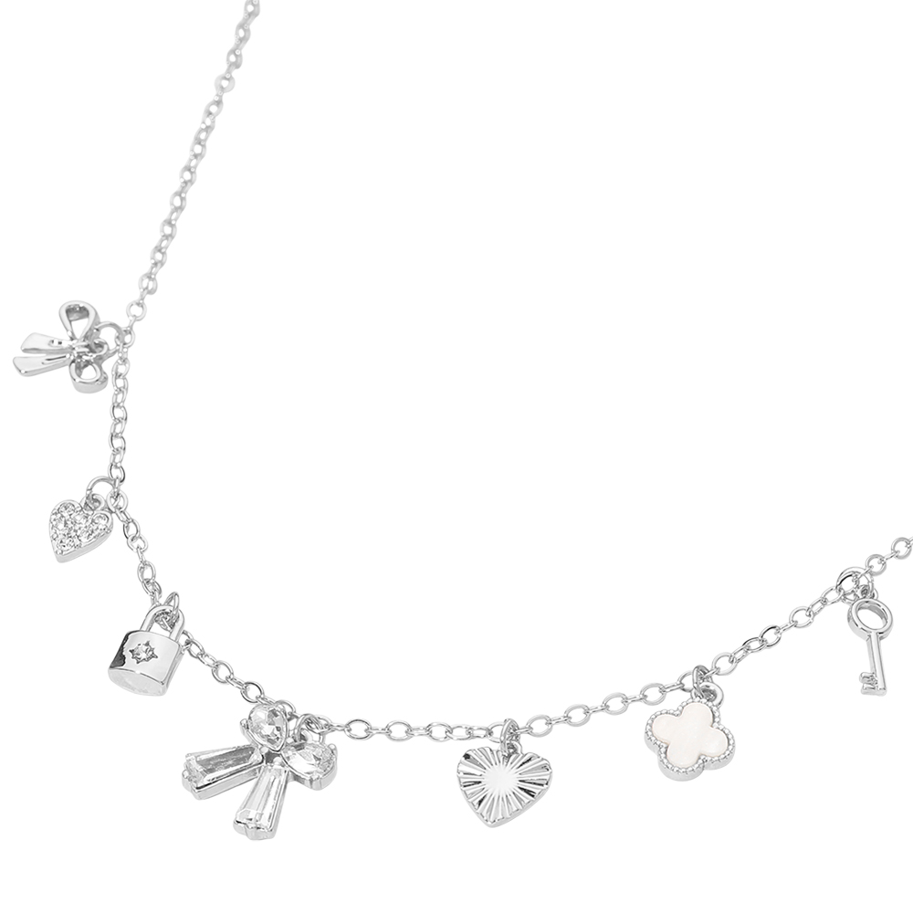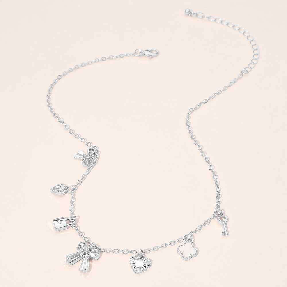 Silver Dipped Bow Quatrefoil Lock Heart Charm Station Necklace Silver Dipped Bow Quatrefoil Lock Heart Charm Station Necklace Silver Dipped Bow Quatrefoil Lock Heart Charm Station Necklace