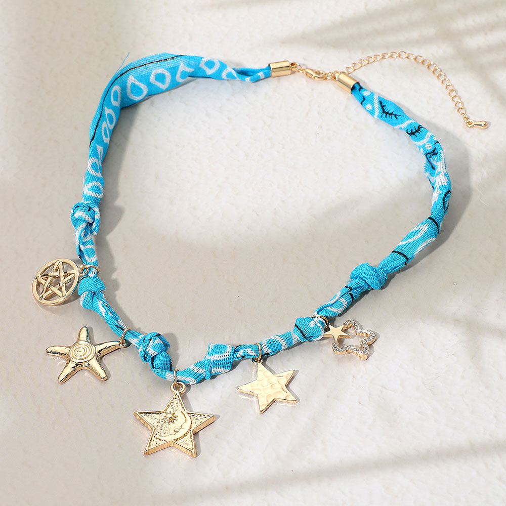 • Stylish bandana necklace featuring an array of star-shaped charms and a pentagram pendant. Adjustable fit makes it perfect for layering or wearing alone, adding a bold and celestial-inspired touch to casual, festival, or statement looks.