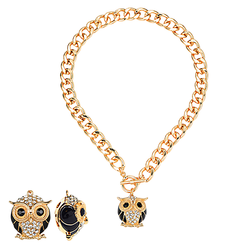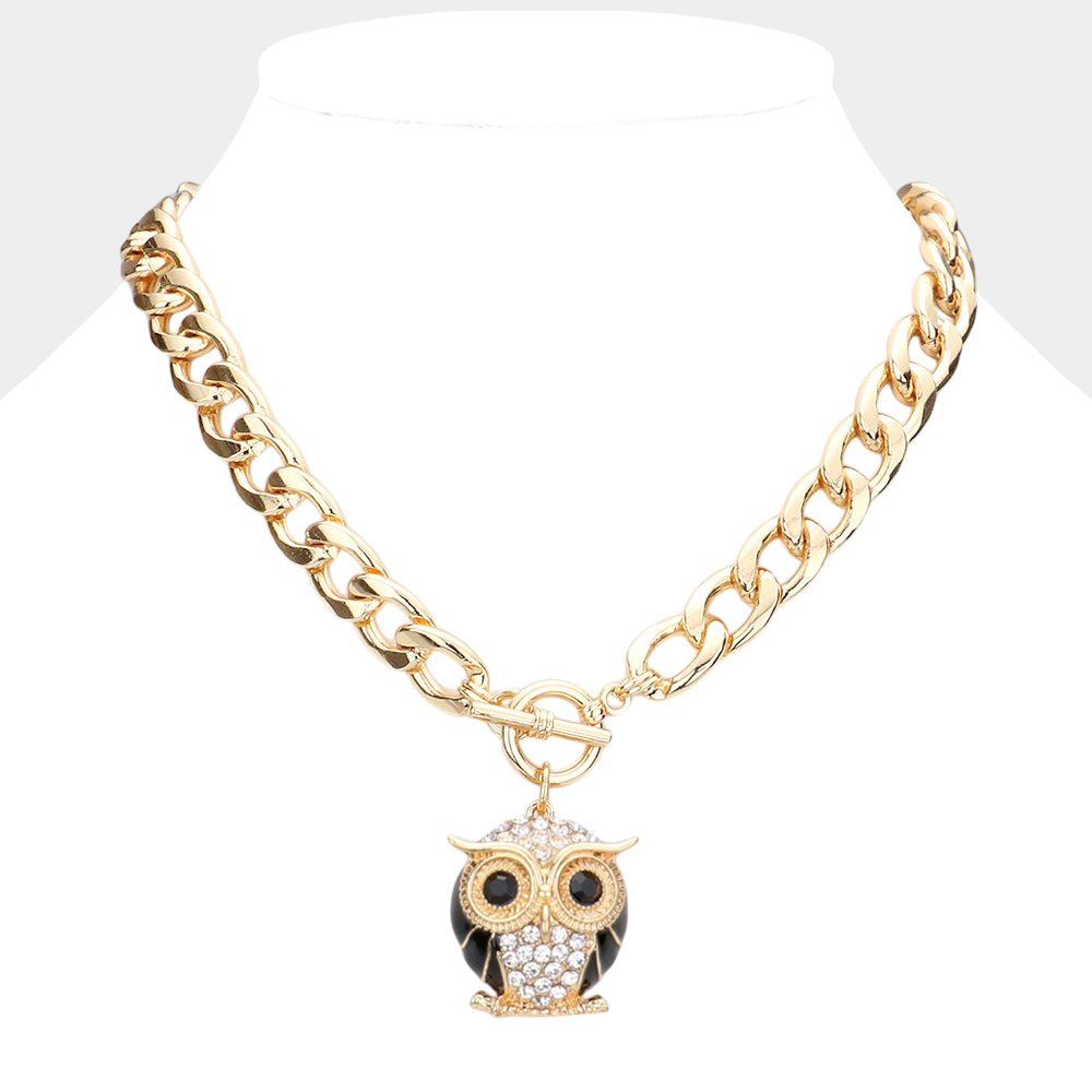 Stone Embellished Owl Pendant Toggle Necklace