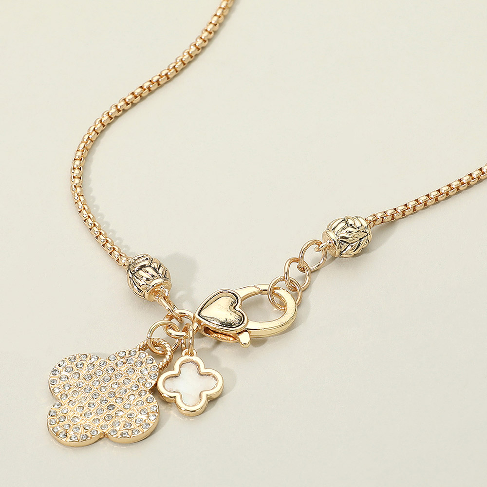 Stone Paved Mother of Pearl Quatrefoil Pendants Necklace Stone Paved Mother of Pearl Quatrefoil Pendants Necklace Stone Paved Mother of Pearl Quatrefoil Pendants Necklace