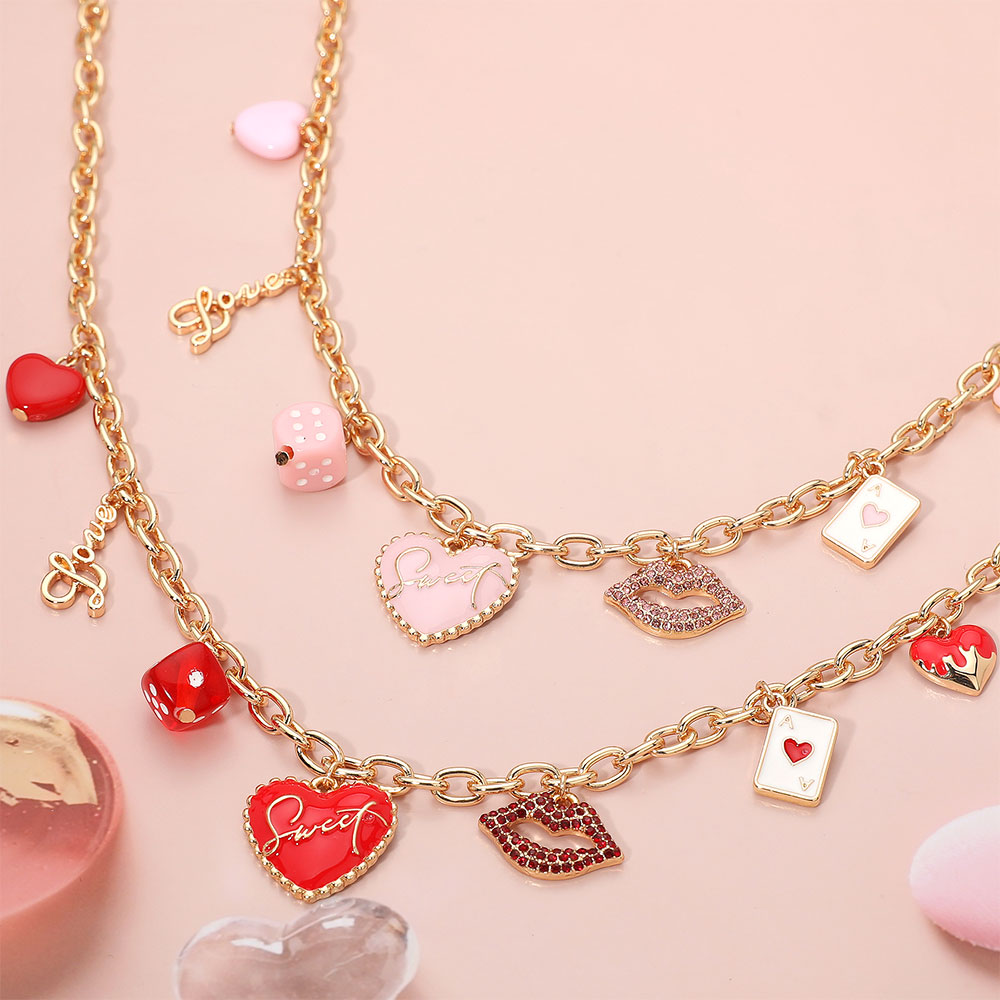 Sweetheart Love Lips Card Dice Charm Station Necklace