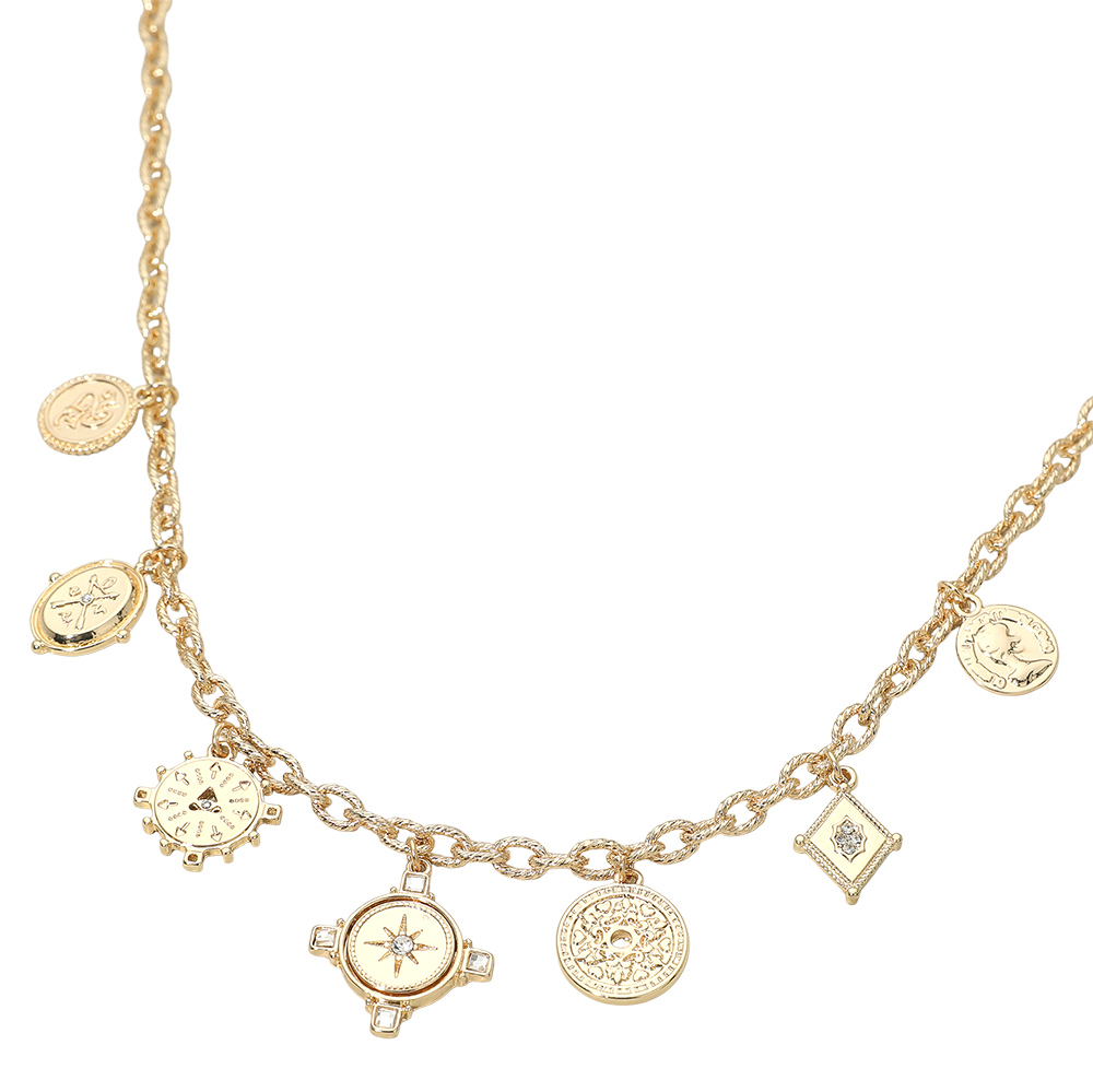 Symbolic Coin Charm Station Necklace